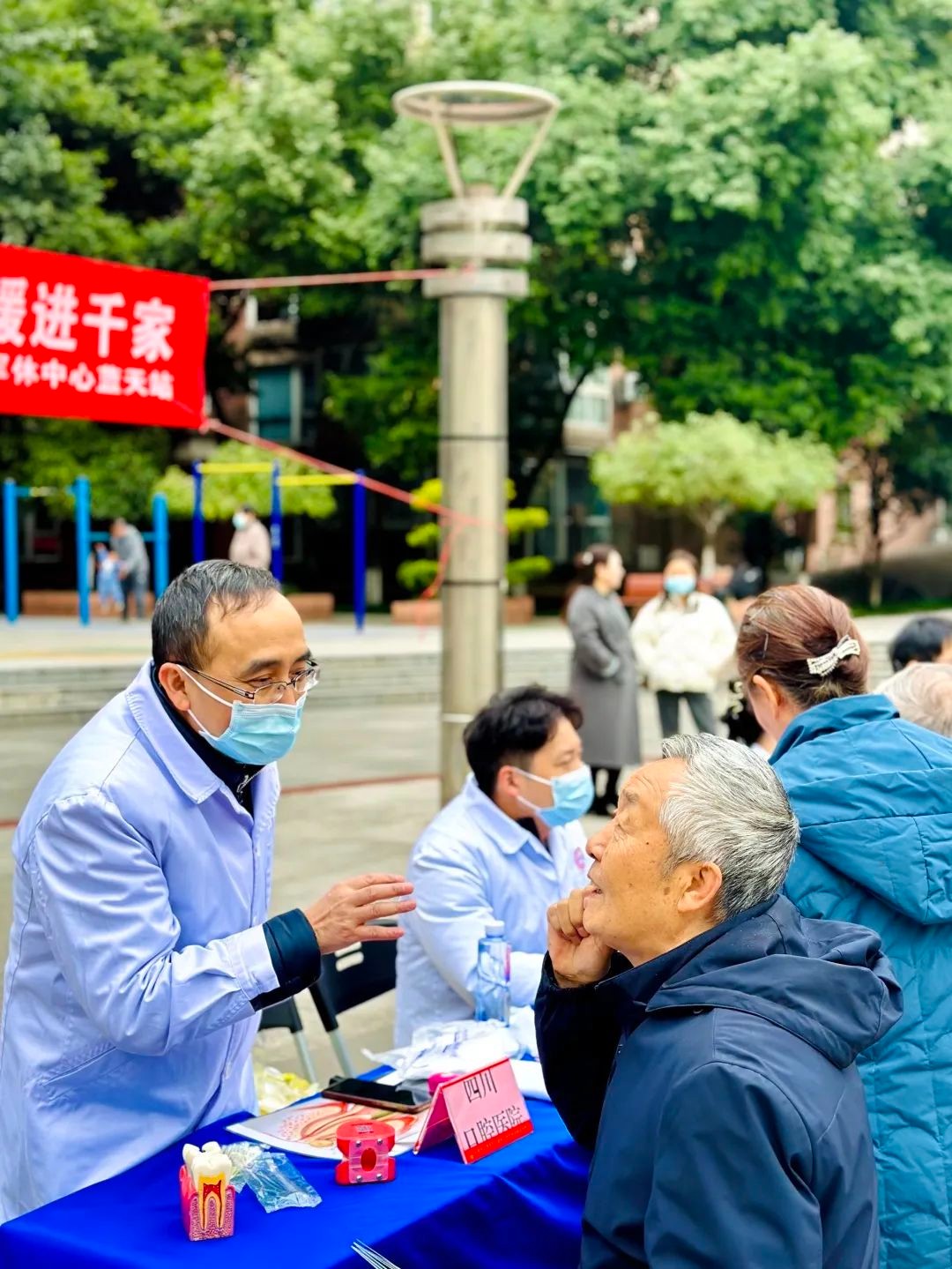 為進(jìn)一步做好軍休干部的醫(yī)療保健工作,嚴(yán)格落實(shí)“兩個(gè)待遇”,提升軍休干部幸福指數(shù)、健康指數(shù)。近日,四川口腔醫(yī)院聯(lián)合成都市武侯區(qū)軍休中心,分別前往解甲園站、戎科苑站、藍(lán)天站等軍休干部集中居住的小區(qū),累計(jì)開展七場義診活動(dòng),為超過2000余名軍休干部提供公益口腔健康篩查及咨詢服務(wù)。