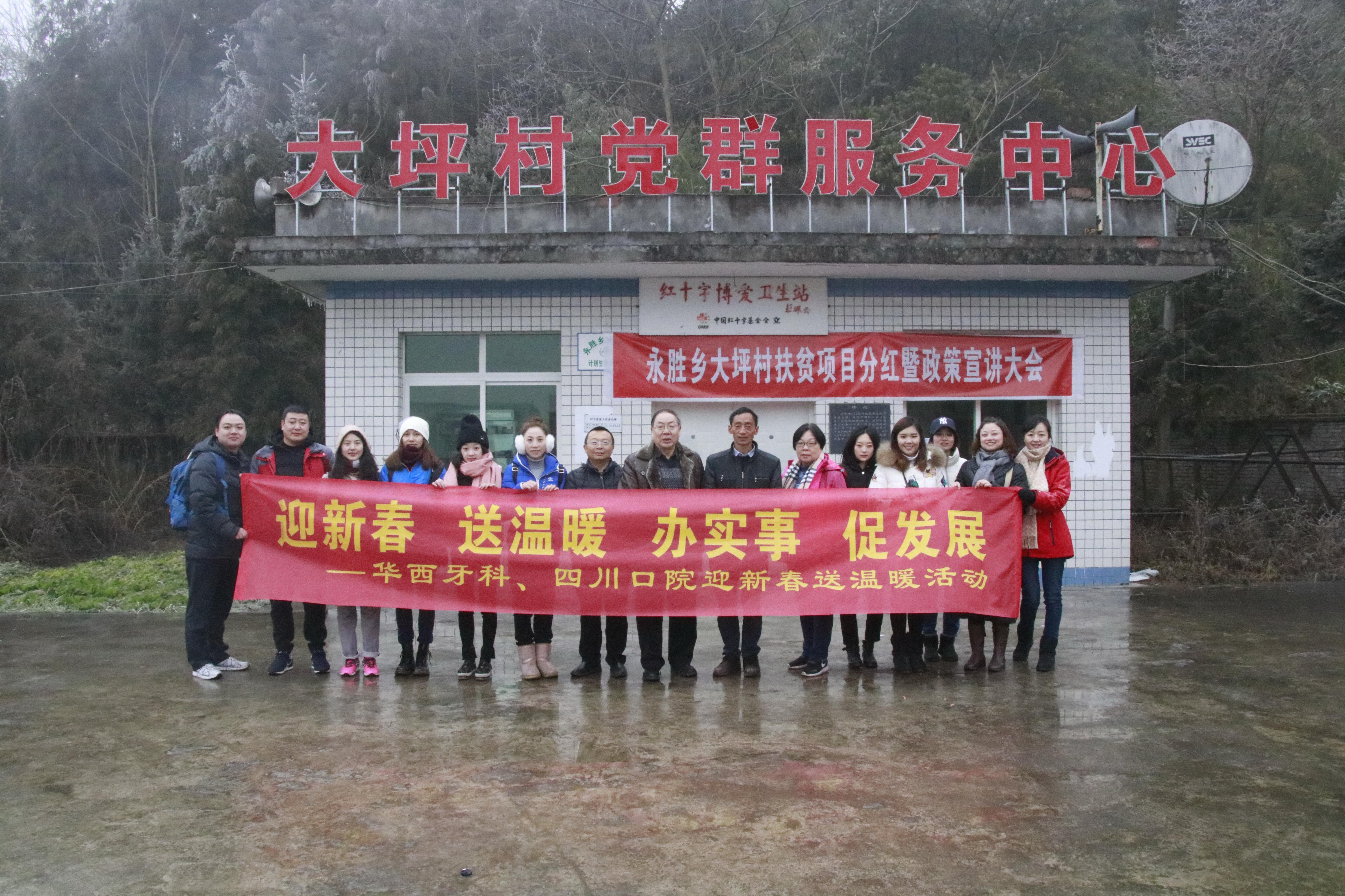 2018年1月25日至26日,在華西牙科總會(huì)計(jì)師王海帆、四川口腔醫(yī)院常務(wù)副院長孫勇的帶領(lǐng)下,扶貧工作小組一行15人驅(qū)車前往大坪村,開展扶貧摸底慰問工作。大坪村黨支部書記張豐奎就目前大坪村經(jīng)濟(jì)產(chǎn)業(yè)結(jié)構(gòu)及貧困戶家庭基本情況作了詳細(xì)介紹。在了解基本情況之后,海帆總提出三點(diǎn)建議,一是要完善基礎(chǔ)設(shè)施建設(shè),扎實(shí)推進(jìn)交通建設(shè)和危房改造;二是要著力發(fā)展產(chǎn)業(yè)培育,重點(diǎn)發(fā)展養(yǎng)殖業(yè),使扶貧工作走在前面;三是要加強(qiáng)基層黨建工作,使基層黨組織成為扶貧得攻堅(jiān)堡壘。孫勇院長指出,幫扶要以項(xiàng)目為依托,要充分發(fā)揮當(dāng)?shù)貎?yōu)勢(shì)。