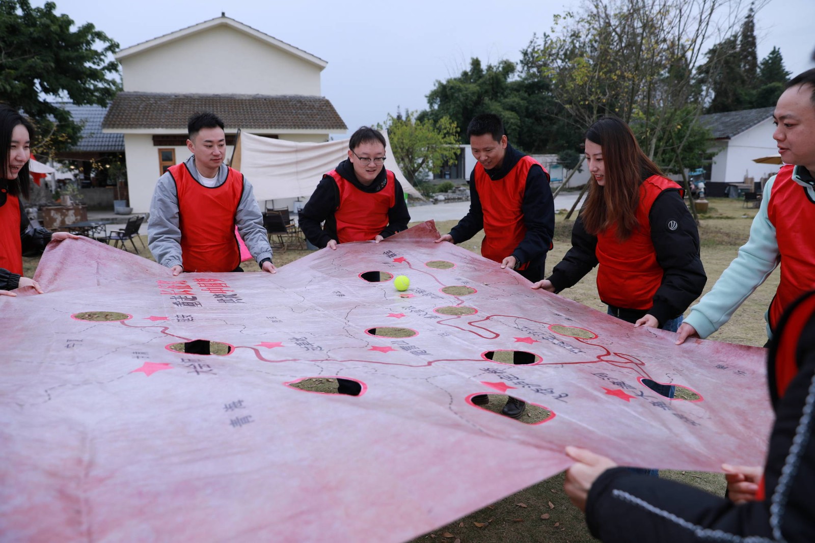活動在輕松有趣的熱身小游戲中展開,大家分為四個小組,每個小組推選隊長、在隊旗上書寫隊名、隊徽和口號,并進行了團隊展示。隨后進行了“畫出心中黨”“飛奪瀘定橋”“漫漫長征路”三個團隊協(xié)作趣味游戲,各隊齊心協(xié)力、拼搏進取、互相鼓勁,現(xiàn)場熱情洋溢、歡聲不斷。