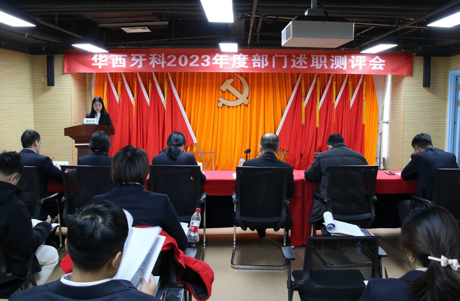 12月22日上午,華西牙科召開2023年度部門述職測(cè)評(píng)會(huì)議,華西牙科班子成員、各部門負(fù)責(zé)人、部分員工代表共計(jì)19人參會(huì)。會(huì)議由華西牙科黨委書記、董事長(zhǎng)、總經(jīng)理劉凌云主持。