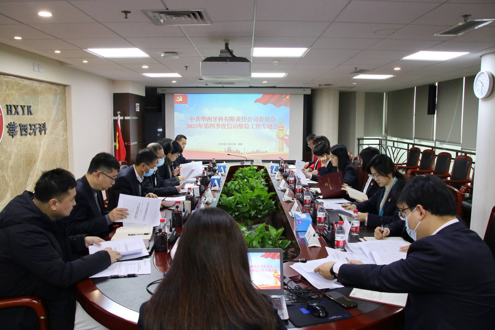 12月22日上午,華西牙科黨委召開2023年第四季度信訪維穩(wěn)工作專題會。會議由華西牙科黨委書記、董事長、總經(jīng)理劉凌云主持,華西牙科班子成員、各部門負(fù)責(zé)人參加會議。