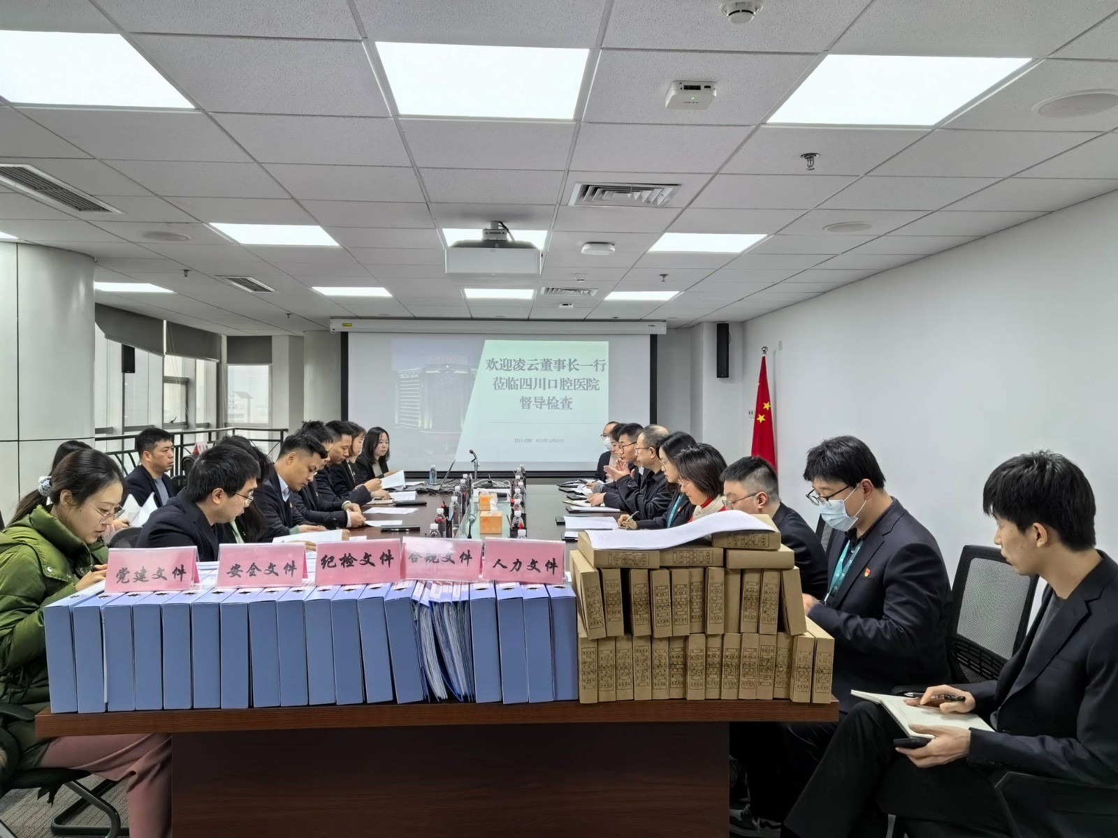 華西牙科巡檢人員,四川口腔醫(yī)院領(lǐng)導(dǎo)班子成員、中層以上管理人員、黨員代表共計20余人參會。