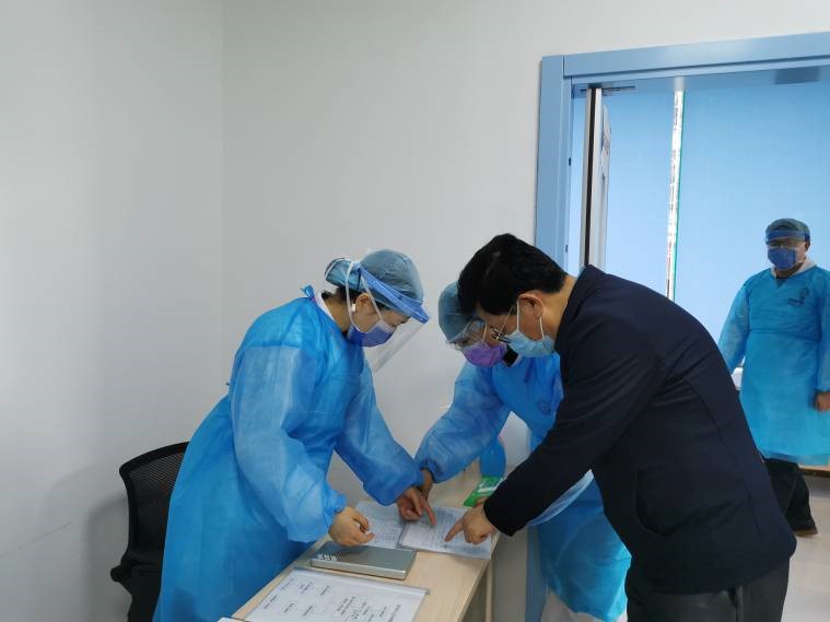 2020年1月29日下午,華西牙科總經(jīng)理關(guān)志強(qiáng)、黨委副書記、紀(jì)委書記金晶一行來到四川口腔醫(yī)院,對(duì)新型冠狀病毒感染的肺炎疫情防控情況進(jìn)行檢查督導(dǎo)。關(guān)總一行聽取了工作人員就發(fā)熱、疑似病人處理上報(bào)流程、人員值班情況、物資準(zhǔn)備、節(jié)后餐廳就餐等事項(xiàng)的匯報(bào)。檢查了醫(yī)院預(yù)檢分診、24小時(shí)發(fā)熱門診、物資儲(chǔ)存間、監(jiān)控室等重點(diǎn)區(qū)域。關(guān)總對(duì)醫(yī)院在防控疫情方面的工作做了充分肯定,并強(qiáng)調(diào)在黨中央、國務(wù)院和省委、省政府以及四川省各級(jí)衛(wèi)生部門的決策部署下,在一線醫(yī)護(hù)人員努力下,疫情蔓延可以得到遏制。關(guān)總指出:要認(rèn)真貫徹習(xí)近平總書記重要指示精神,全面落實(shí)省委常委會(huì)會(huì)議和省國資委、川投集團(tuán)文件精神,按照公共衛(wèi)生一級(jí)應(yīng)急響應(yīng)要求,更加扎實(shí)更加細(xì)致地做好疫情防控各項(xiàng)工作,進(jìn)一步補(bǔ)短板、堵漏洞,堅(jiān)決把早發(fā)現(xiàn)、早報(bào)告、早隔離、早治療各項(xiàng)措施落實(shí)到位,確保疫情防控到位。要扎實(shí)抓好生活物資的組織保障和供應(yīng),確保節(jié)后上班和日常運(yùn)營工作的穩(wěn)定。同時(shí)要加強(qiáng)對(duì)一線醫(yī)護(hù)人員及公共崗位值班人員的保護(hù),確保安全。