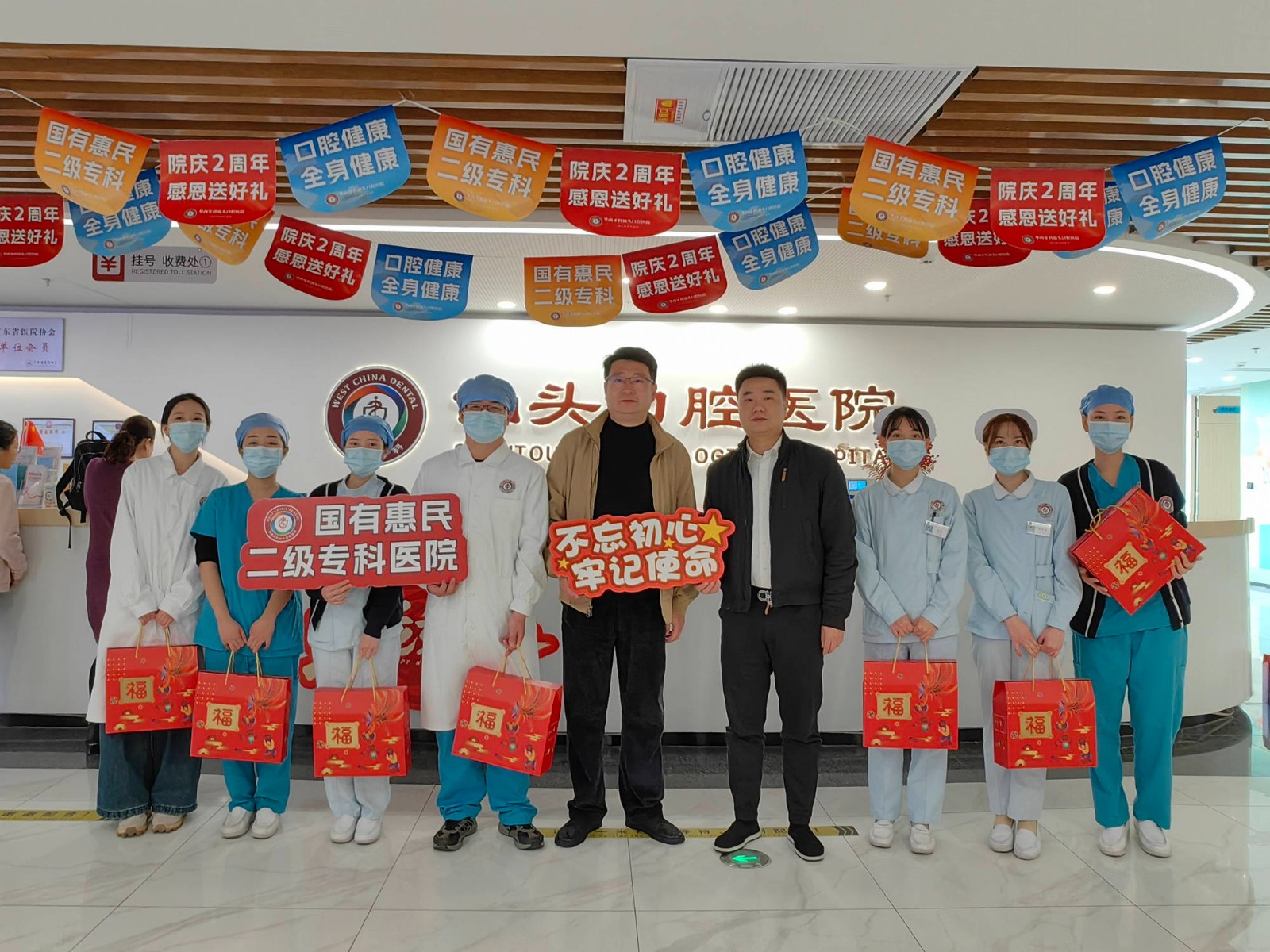 李景雨一行首先看望慰問了汕頭口腔醫(yī)院一線醫(yī)務(wù)工作人員,為他們送上慰問品,對醫(yī)院全體工作人員所展現(xiàn)出的凝聚力、團結(jié)奮斗的優(yōu)良作風(fēng)給予肯定,對他們的辛勤付出表示由衷感謝,同時表達了新春即將來臨的誠摯祝福,勉勵大家在新的一年里再接再厲,為醫(yī)院的發(fā)展貢獻更多力量。大家表示,在今后工作中,一定以更加飽滿的熱情做好本職工作,為華西牙科品牌發(fā)展添磚加瓦,為人民群眾口腔健康保駕護航。