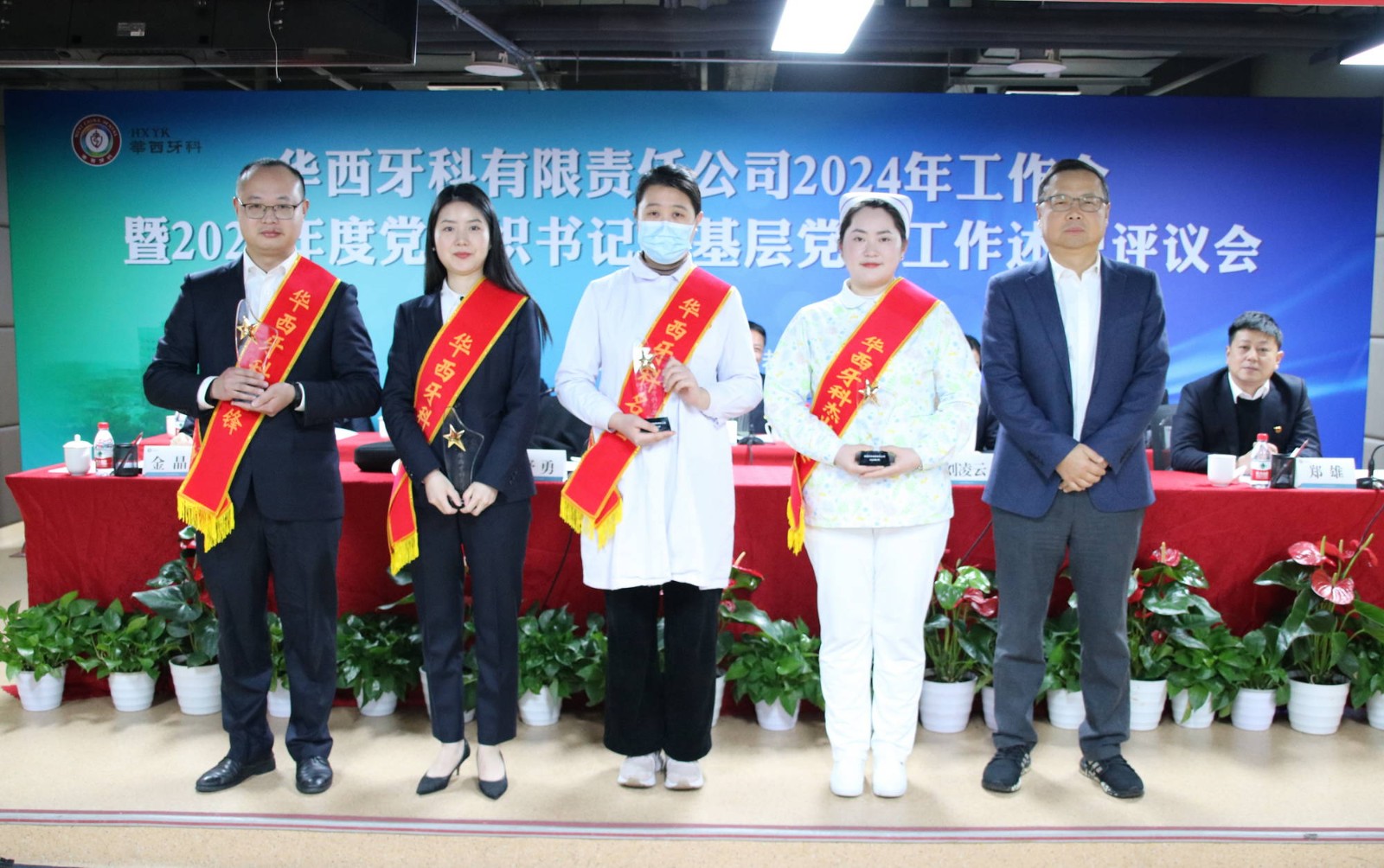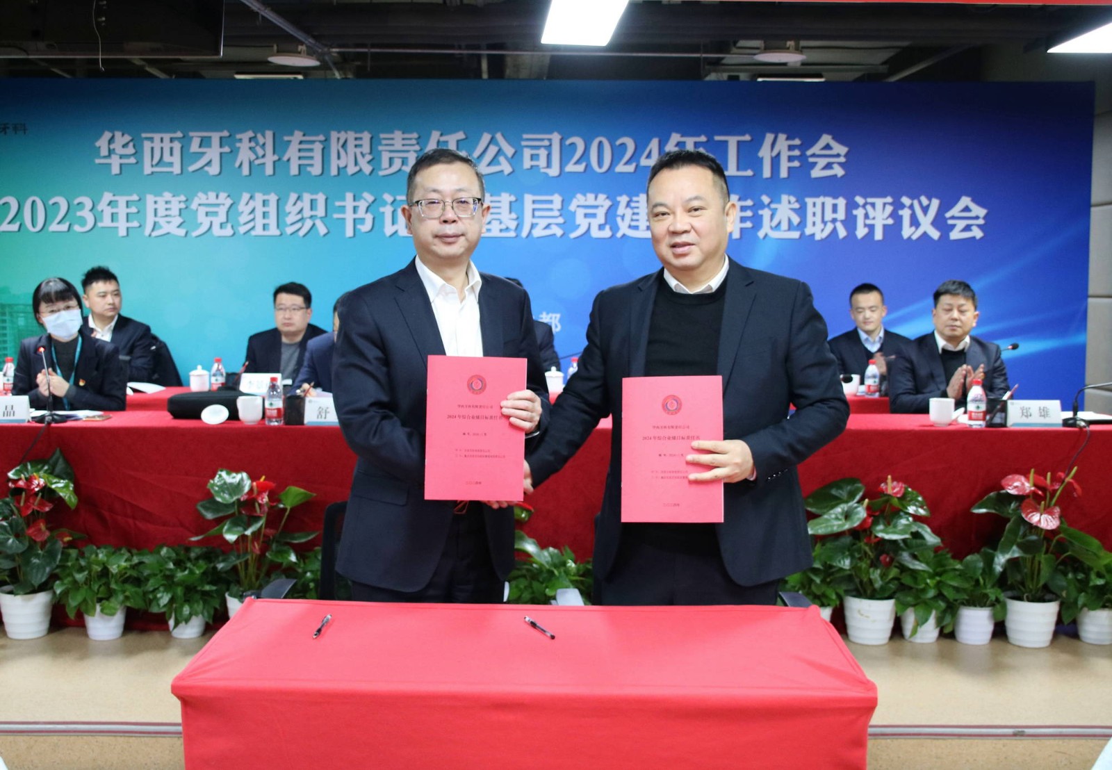 會議書面?zhèn)鬟_(dá)了近期全國全省安全生產(chǎn)會議精神。華西牙科班子成員依次宣讀了表彰文件,對華西牙科信息宣傳先進(jìn)單位、優(yōu)秀講師、華西牙科本部先進(jìn)部門、管理能手、優(yōu)秀員工、華西牙科黨員示范崗、十佳員工、華西牙科“四項人才”進(jìn)行表彰并頒發(fā)了榮譽證書。華西牙科黨委書記、董事長劉凌云與子公司負(fù)責(zé)人代表簽署了《華西牙科2024年度目標(biāo)責(zé)任書》、《安全生產(chǎn)環(huán)境保護(hù)工作目標(biāo)責(zé)任書》。隨后,通過“一述一評”的方式,華西牙科各子公司進(jìn)行2023年工作報告暨黨組織書記抓基層黨建工作述職,劉凌云董事長逐一點評,與會人員對述職同志抓基層黨建工作情況進(jìn)行民主評議,對黨總支、黨支部的日常工作進(jìn)行評定。