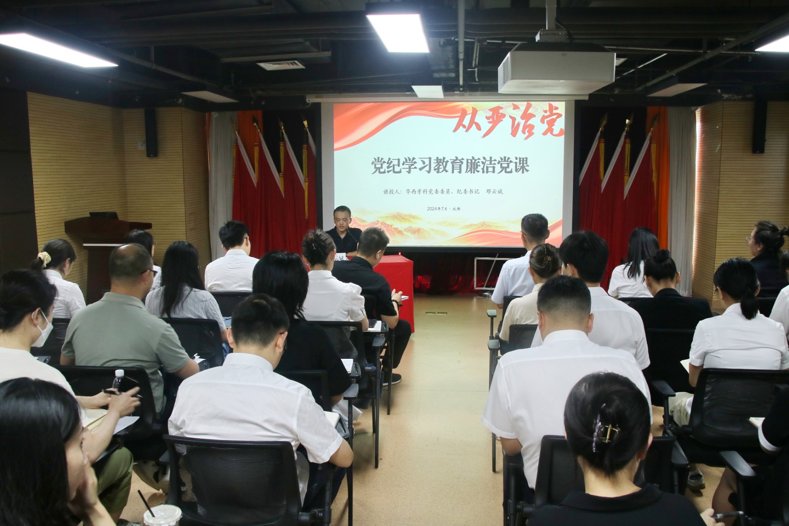按照黨紀學(xué)習(xí)教育工作安排,7月30日,華西牙科黨委委員、紀委書記鄧云斌在四川口腔醫(yī)院13樓會議室開展了第四期“五心講堂”暨黨紀學(xué)習(xí)教育專題廉潔黨課。