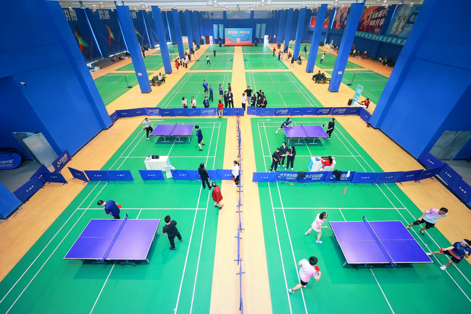 此次運動會設(shè)置了趣味運動、乒乓球和羽毛球三個項目,比賽過程中,參賽運動員們?nèi)σ愿?、以技會友,歡笑聲連綿不斷,喝彩聲此起彼伏,達到了加強體育鍛煉和增進集體友誼的良好效果。