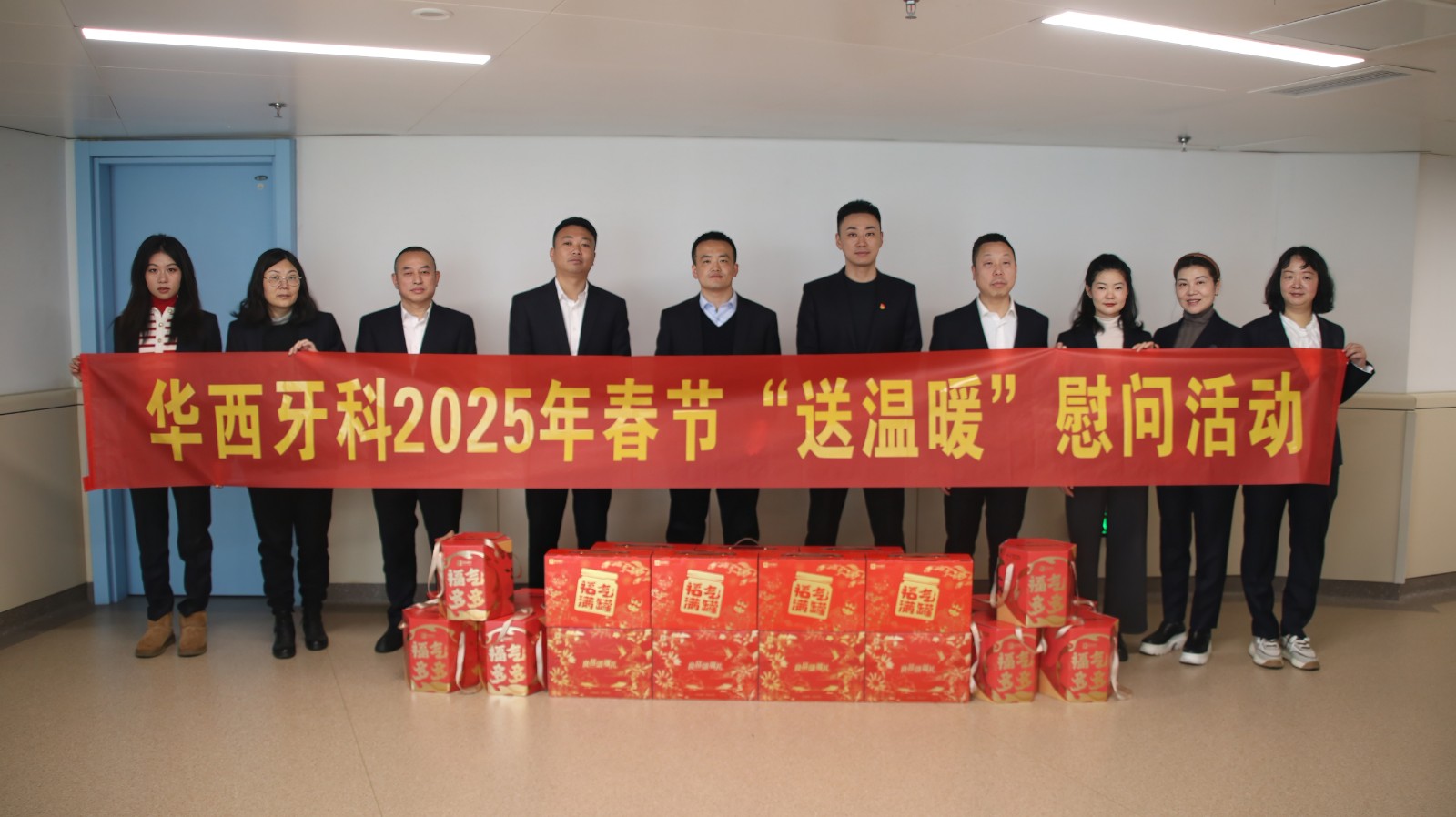 鄧云斌首先代表華西牙科對天府華西牙科全體員工過去一年的辛勤付出表示衷心感謝,并向堅(jiān)守在一線的工作人員送上節(jié)日問候與祝福,隨后,鄧云斌為員工們發(fā)放了慰問物資。