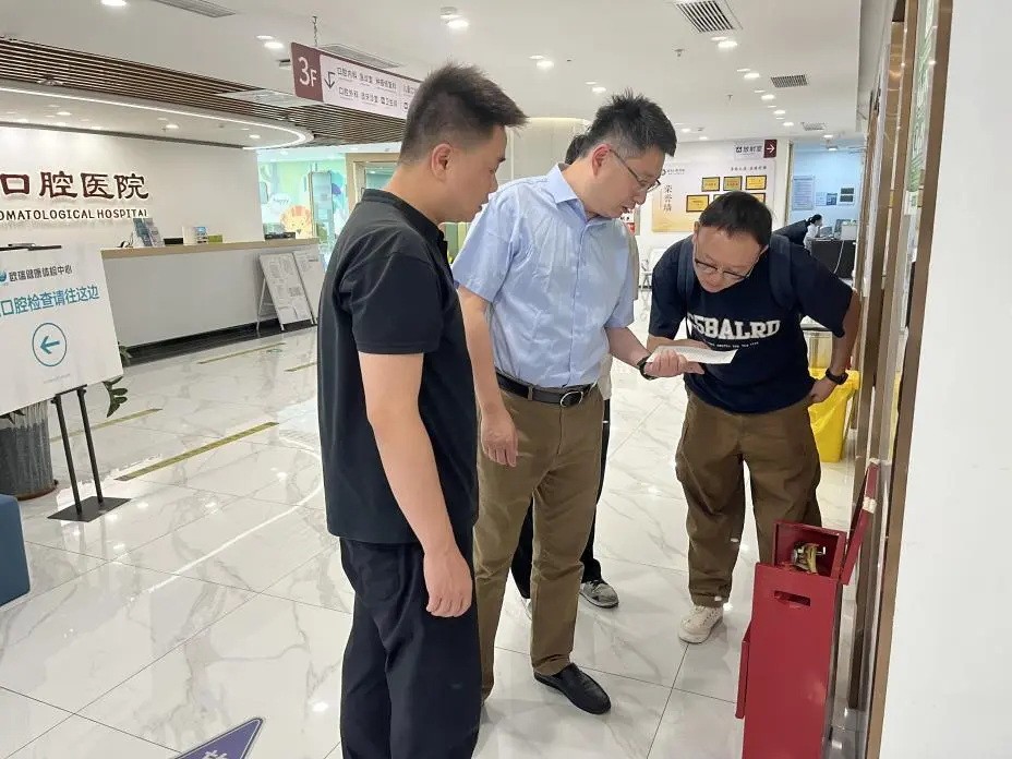 6 月 30 日,華西牙科副總經(jīng)理李景雨帶隊(duì)赴汕頭口腔醫(yī)院開展安全生產(chǎn)和防災(zāi)減災(zāi)專項(xiàng)督導(dǎo)檢查。汕頭口腔醫(yī)院黨支部書記、董事長鐘至誠陪同檢查。