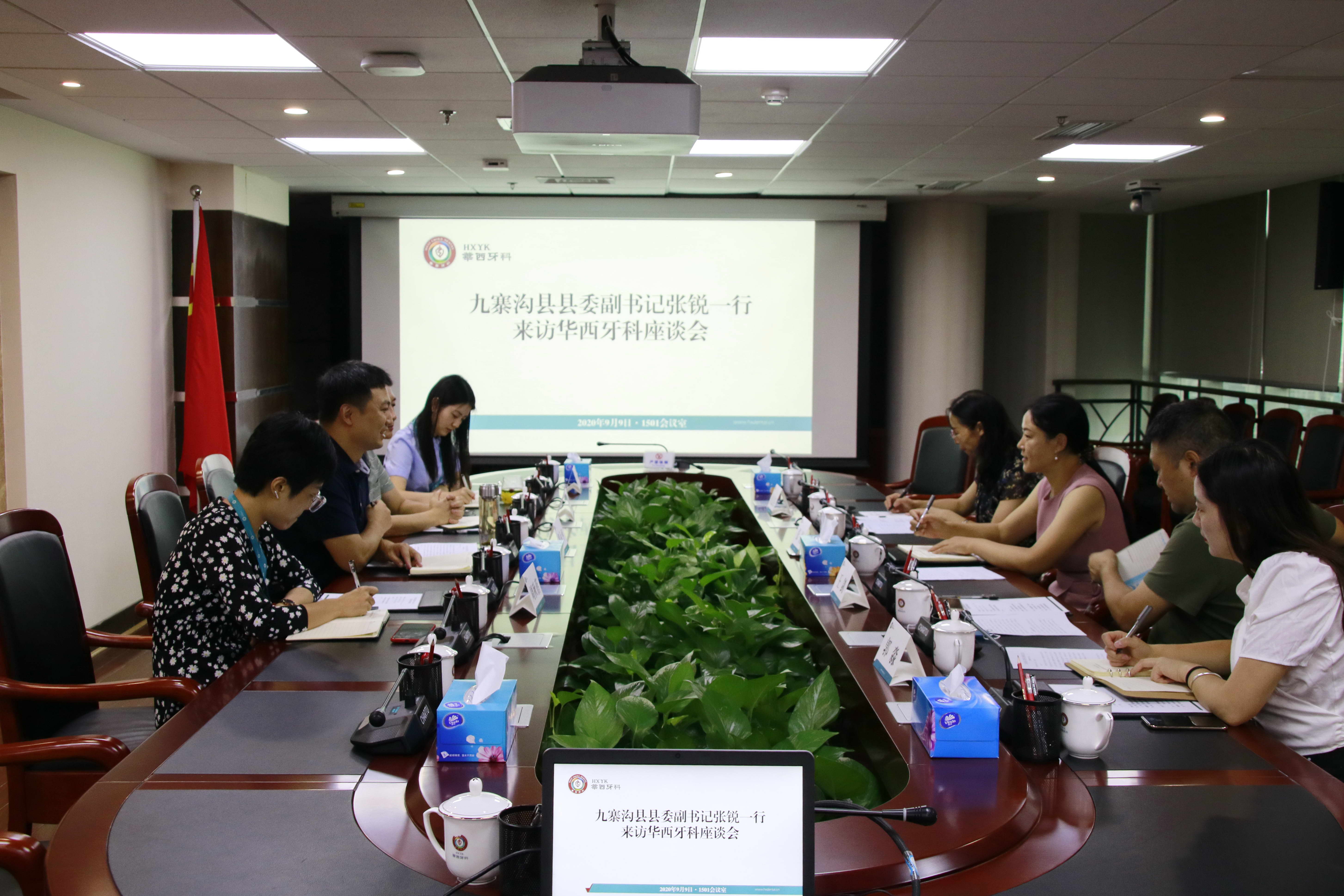 9月9日上午,九寨溝縣縣委副書記張銳一行來(lái)訪華西牙科。九寨溝縣商務(wù)和經(jīng)濟(jì)合作局局長(zhǎng)王劍、衛(wèi)健局局長(zhǎng)董慧英、衛(wèi)健局大健康服務(wù)中心主任郭淼,川投集團(tuán)黨委委員、副總經(jīng)理、華西牙科黨委書記、董事長(zhǎng)羅永平,華西牙科副總經(jīng)理羅云教授,以及華西牙科相關(guān)部門負(fù)責(zé)人參加會(huì)談。
