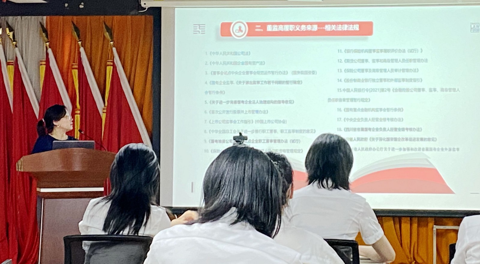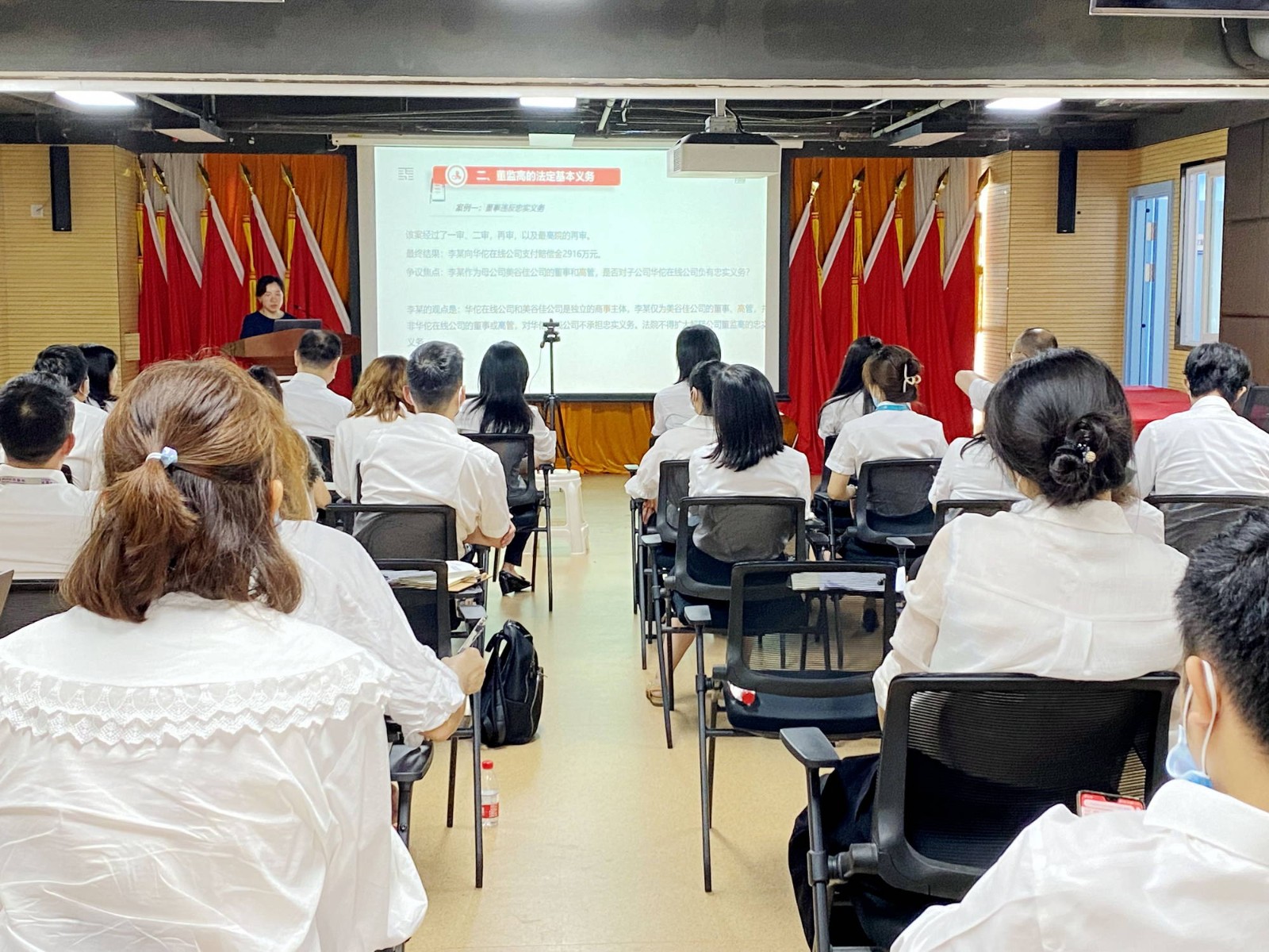 培訓(xùn)會(huì)上,華西牙科常年法律顧問(wèn)泰和泰律師事務(wù)所徐靜律師作了《國(guó)有企業(yè)外派董監(jiān)高履職風(fēng)險(xiǎn)防范》專題授課,從外派董監(jiān)事的法定義務(wù)、履職義務(wù)、履職過(guò)程中的風(fēng)險(xiǎn)防范做了詳細(xì)講解。