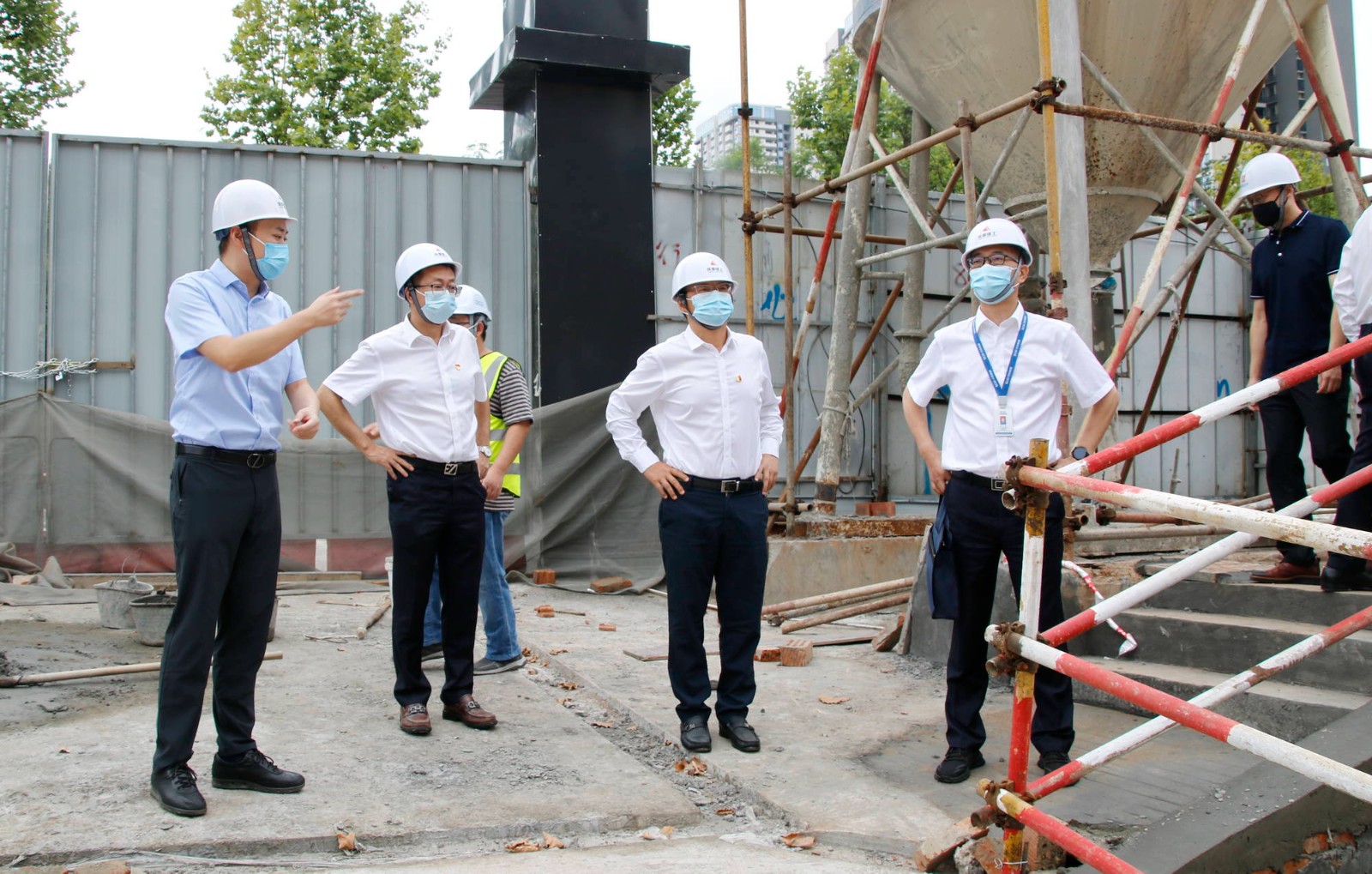 舒總一行首先來到四川口腔醫(yī)院,實地檢查了醫(yī)院消防監(jiān)控室,污水處理站,信訪維穩(wěn)辦公室以及預(yù)檢分診點設(shè)置情況。對華西牙科疫情防控、安全環(huán)保、防災(zāi)減災(zāi)及信訪維穩(wěn)相關(guān)資料逐一進(jìn)行了檢查,就存在問題提出了具體整改意見。隨后,舒總一行前往華西牙科總部項目,現(xiàn)場檢查了施工進(jìn)度與安全環(huán)保措施執(zhí)行情況。