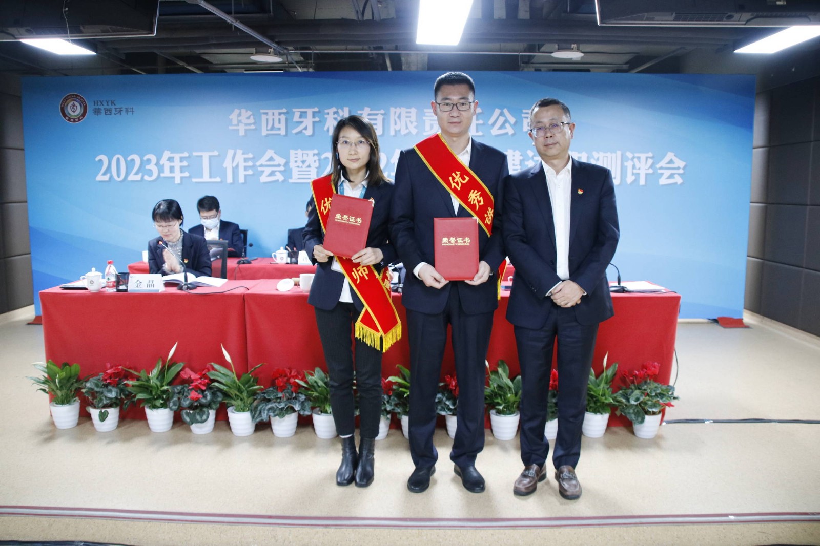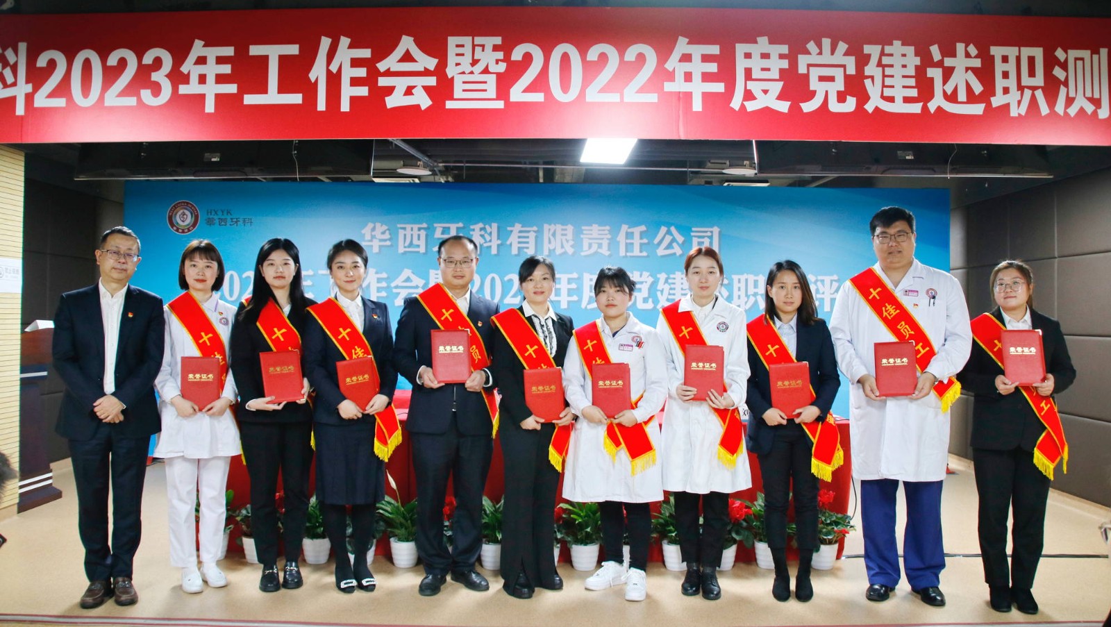 按照議程安排,華西牙科各子公司經(jīng)營負(fù)責(zé)人、黨組織負(fù)責(zé)人進(jìn)行了年度工作和黨建工作述職,華西牙科領(lǐng)導(dǎo)班子成員、各黨組織負(fù)責(zé)人和黨員代表對納入考核范圍的各黨組織負(fù)責(zé)人進(jìn)行了民主測評,華西牙科副總經(jīng)理李景雨傳達(dá)了川投集團(tuán)2023年工作會會議精神,副總經(jīng)理劉云戈傳達(dá)了近期全國全省安全生產(chǎn)會議精神。隨后,華西牙科黨委書記、董事長劉凌云與子公司負(fù)責(zé)人代表簽署了《經(jīng)營業(yè)績責(zé)任書》《安全生產(chǎn)環(huán)境保護(hù)工作目標(biāo)責(zé)任書》。會議還表彰了華西牙科2022年度優(yōu)秀講師、本部先進(jìn)部門及優(yōu)秀員工、十佳員工、“四項人才”,并頒發(fā)了榮譽證書。