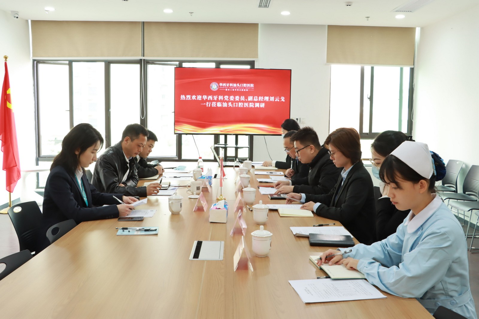 3月2日-3日,華西牙科黨委委員、副總經(jīng)理劉云戈率隊赴汕頭口腔醫(yī)院開展“兩會”前安全生產(chǎn)專項檢查和督導(dǎo)調(diào)研。華西牙科經(jīng)營管理部副部長青亮,汕頭口腔醫(yī)院黨支部書記、董事長鐘至誠,財務(wù)總監(jiān)羅歡及相關(guān)人員陪同。