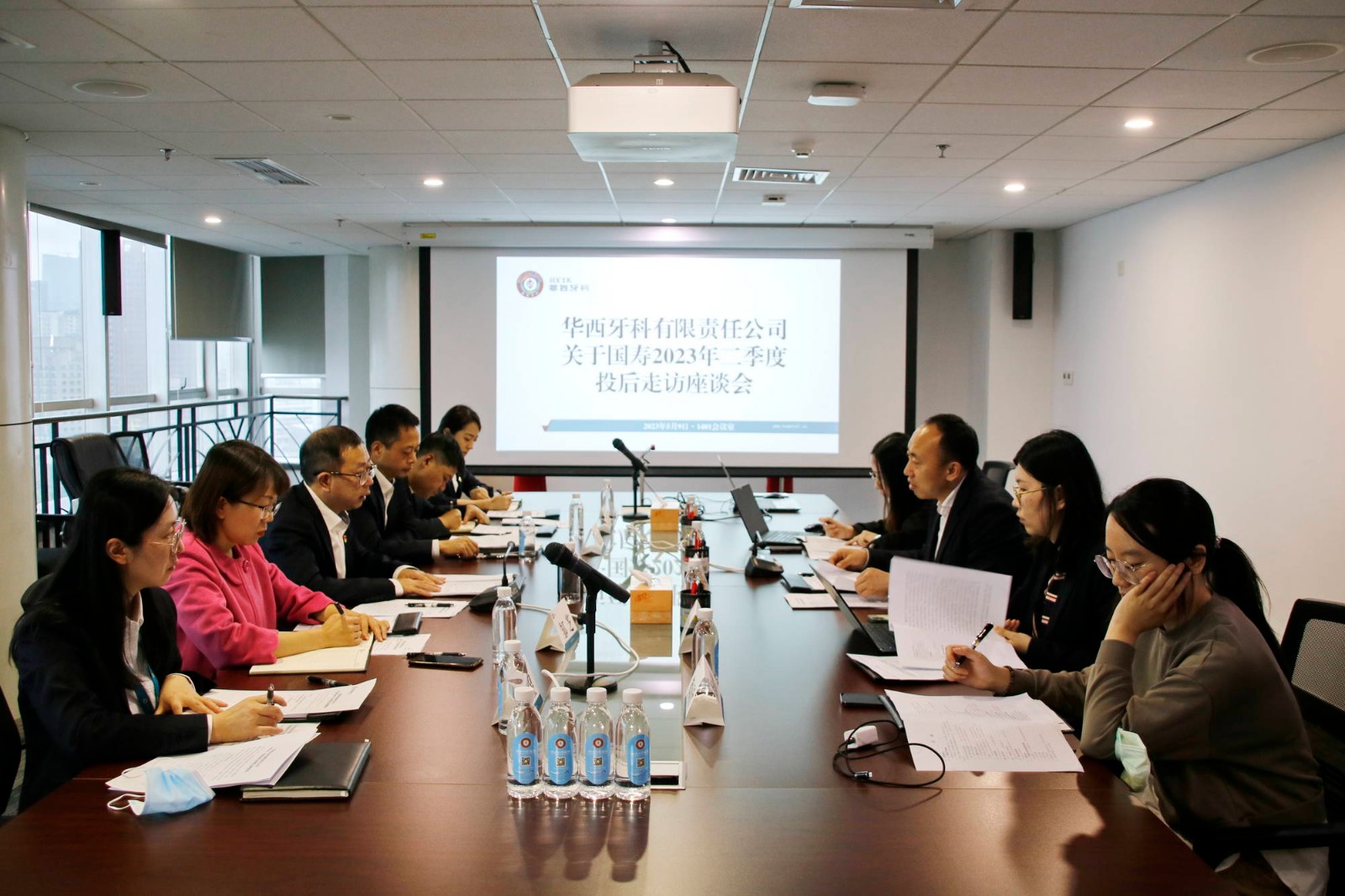 國壽股權(quán)投資有限公司投資管理中心經(jīng)理崔凱欣、風(fēng)控與合規(guī)中心經(jīng)理劉晴、熊雨欣,華西牙科戰(zhàn)略投資部部長鄒芝、經(jīng)營管理部副部長青亮、人力資源部副部長陳煜參加會議。