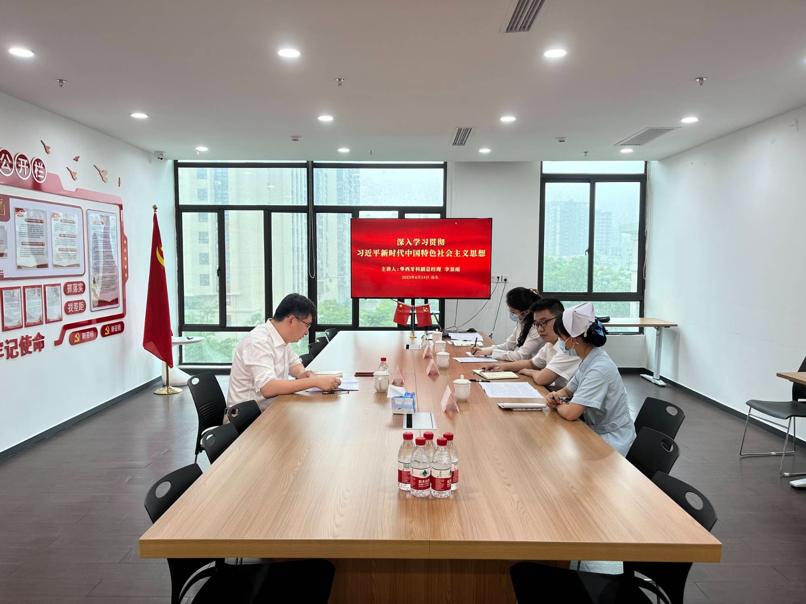 6月14日,華西牙科副總經(jīng)理李景雨前往汕頭口腔醫(yī)院開(kāi)展主題教育調(diào)研,并講授主題教育專題黨課。汕頭口腔醫(yī)院黨支部書(shū)記、董事長(zhǎng)鐘至誠(chéng)、四川口腔醫(yī)院高新分院籌備組副組長(zhǎng)吳軍均,以及汕頭口腔醫(yī)院黨支部黨員參加學(xué)習(xí)。