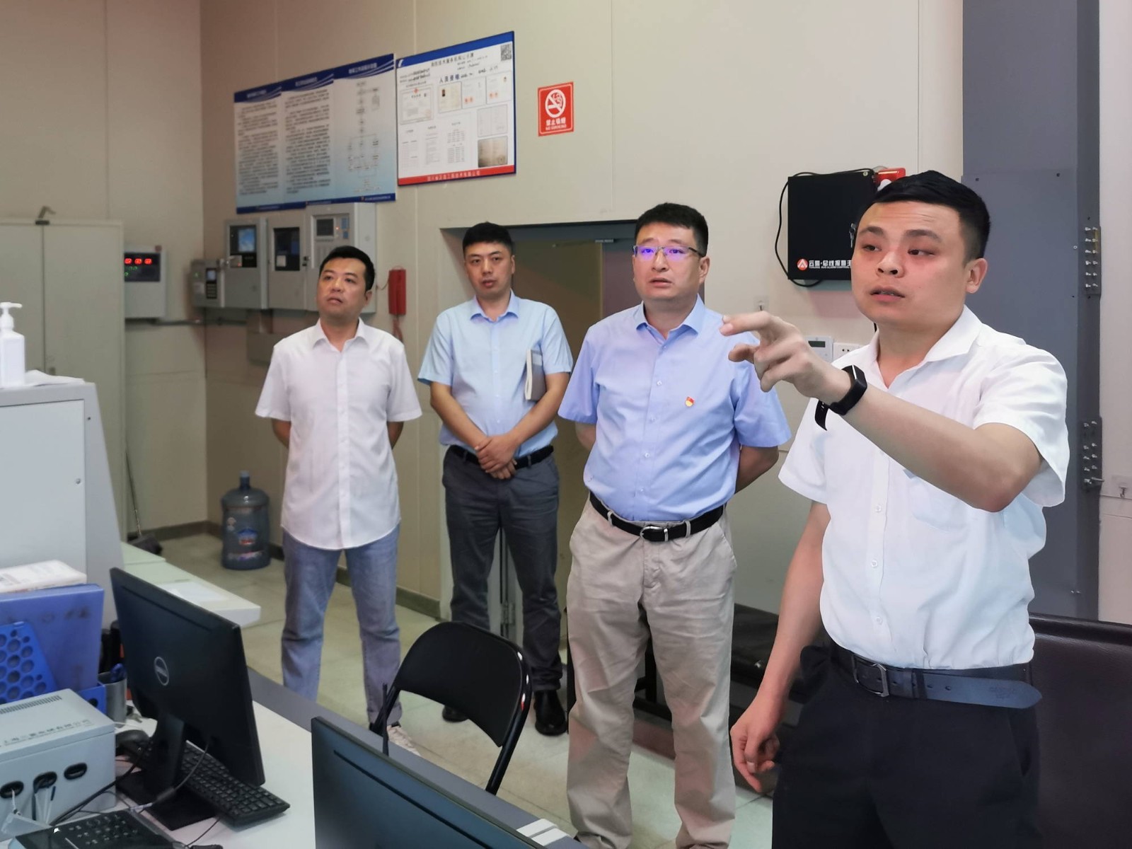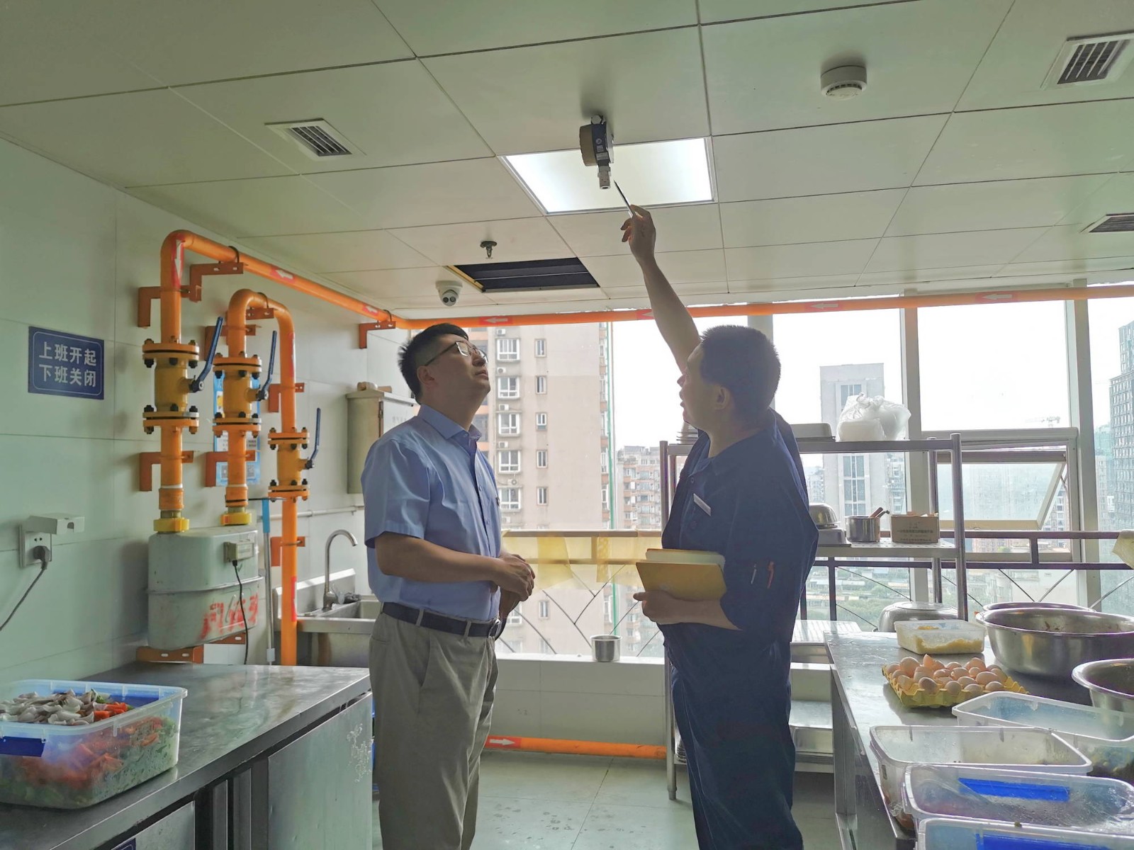 李景雨一行重點(diǎn)檢查了大廈16樓食堂燃?xì)馐褂们闆r,聽(tīng)取了物業(yè)運(yùn)維人員對(duì)天然氣泄露探測(cè)報(bào)警系統(tǒng)運(yùn)行原理的講解,檢查了燃?xì)獍踩O(jiān)測(cè)維護(hù)臺(tái)賬,他強(qiáng)調(diào),食堂員工一定要注意燃?xì)馐褂冒踩?,遵守操作?guī)范,發(fā)現(xiàn)問(wèn)題要立即斷氣并及時(shí)報(bào)告,不得私自維修、私接亂改。同時(shí),天氣日漸炎熱,廚房一定要保障好食品安全,及時(shí)處置過(guò)期變質(zhì)食品,讓員工吃的放心、吃的安心。