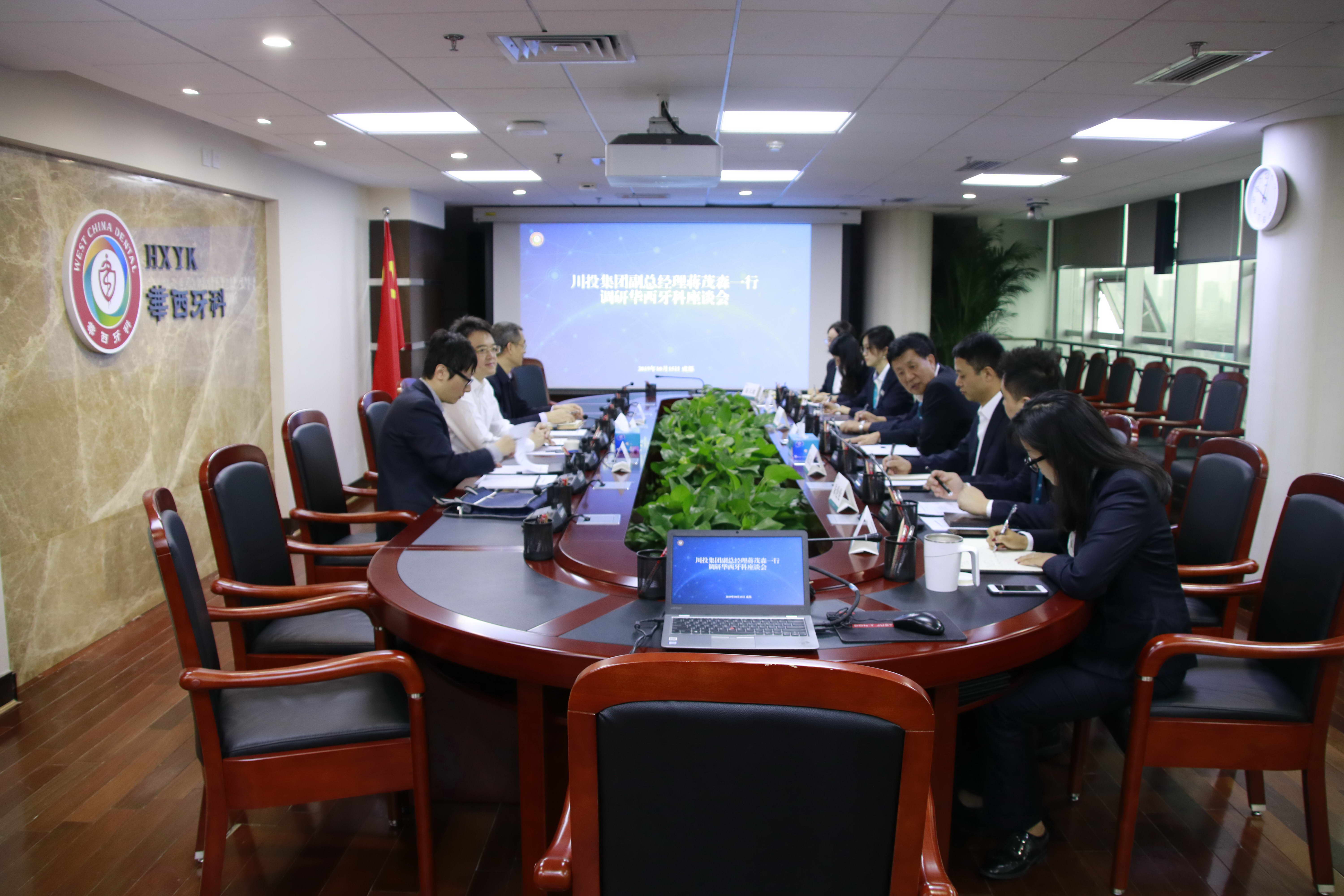 10月15日上午,川投集團副總經(jīng)理蔣茂森,率總經(jīng)理助理、戰(zhàn)略投資部部長田傳平、戰(zhàn)略投資部辛力波蒞臨華西牙科調(diào)研指導(dǎo)工作。華西牙科總經(jīng)理關(guān)志強、副總經(jīng)理劉云戈、四川口院院長郭維華、華西牙科相關(guān)部門負(fù)責(zé)人陪同調(diào)研。