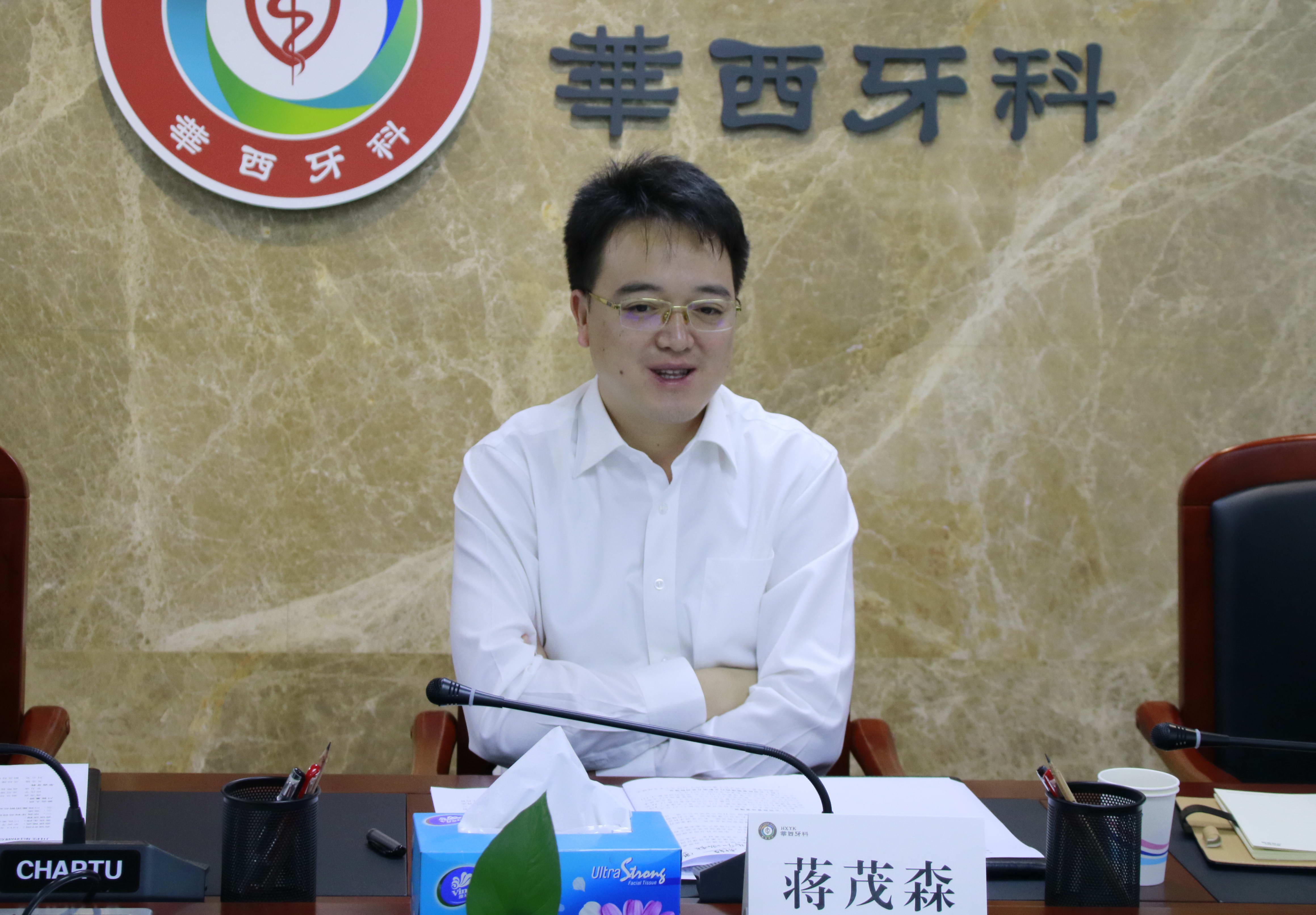 隨后,在華西牙科召開了座談會,會上關(guān)志強總經(jīng)理首先感謝蔣總一行對華西牙科的關(guān)心和重視,隨后從公司基本情況、經(jīng)營發(fā)展?fàn)顩r、口腔行業(yè)現(xiàn)狀、與集團兄弟單位協(xié)同情況、發(fā)展的優(yōu)勢及不足、下一步打算、懇請支持事項等七個方面匯報了華西牙科的發(fā)展情況。關(guān)總表示,華西牙科目前還處在初創(chuàng)期,希望川投集團給予更多的指導(dǎo)和支持。