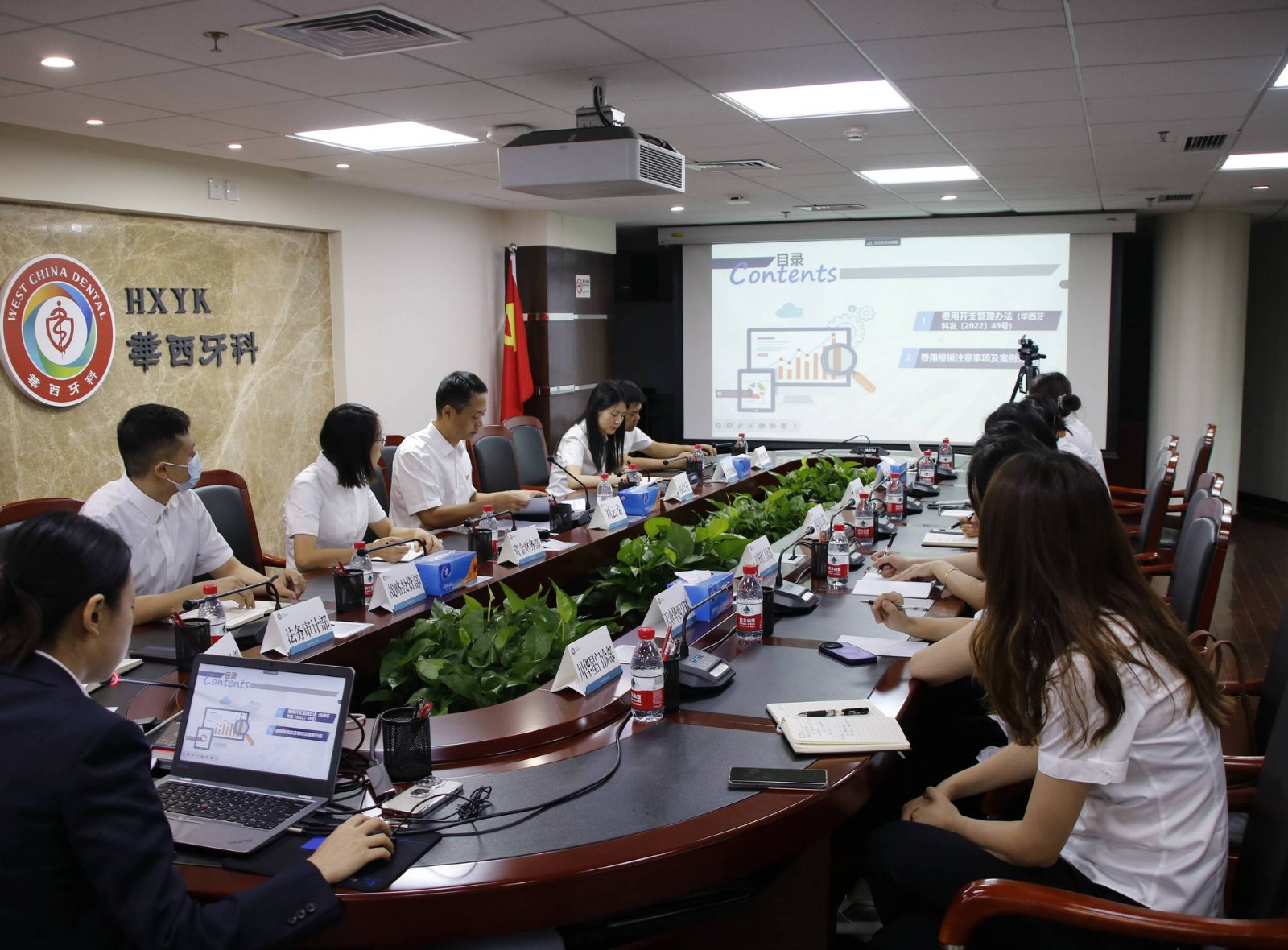 8月29日上午, 華西牙科在本部1501會議室組織開展2023年第五期“五心”講堂之藍色匠心專題培訓會議。華西牙科本部全體員工、所屬子公司財務人員及辦公室相關工作人員等50余人以現場和視頻方式參加培訓。培訓由黨委委員、副總經理劉云戈主持。