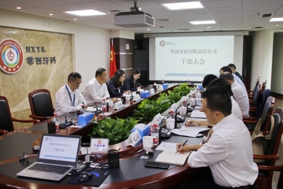 9月25日,華西牙科在本部1501會議室召開干部大會。川投集團黨委委員、副總經理舒勇,黨委組織部部長朱莉,資金財務部部長葉光明出席會議。會議由華西牙科黨委書記、董事長、總經理劉凌云主持。