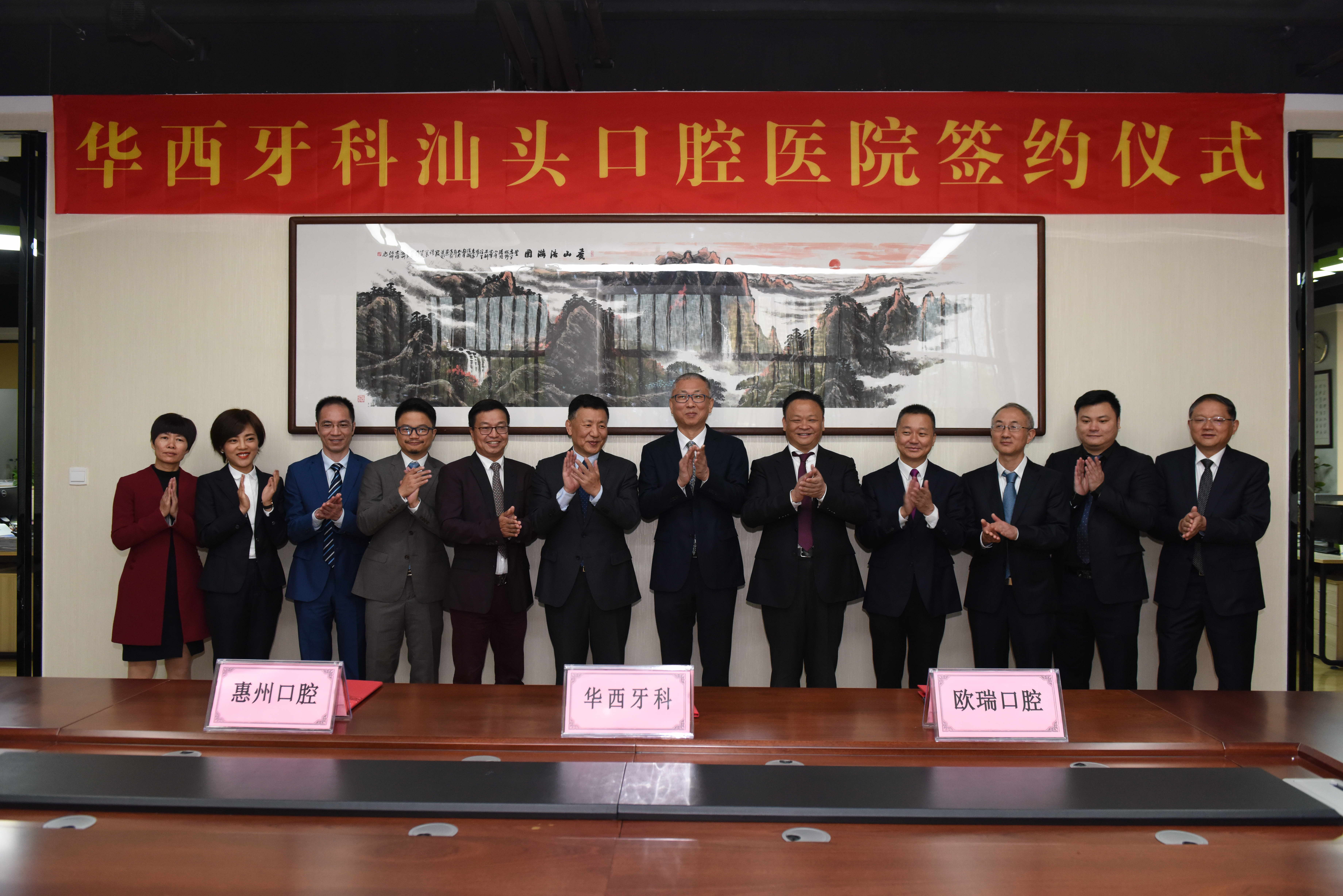 2019年11月11日,華西牙科汕頭口腔醫(yī)院簽約儀式在汕頭市龍湖區(qū)隆重舉行。華西牙科總經(jīng)理關(guān)志強(qiáng)、副總經(jīng)理羅云、專家委副主任鄭立舸、惠州口腔醫(yī)院院長王遠(yuǎn)勤、廣東歐瑞口腔科技有限公司總經(jīng)理張朝通等參加簽約儀式;汕頭市龍湖區(qū)黨組副書記孫健文、汕頭市龍湖區(qū)衛(wèi)健局局長鐘子明蒞臨簽約儀式現(xiàn)場(chǎng),共同見證這一歷史時(shí)刻。