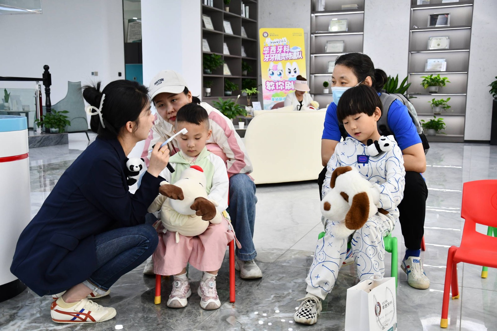 5月18日至19日,蘭州華西牙科醫(yī)院分批次邀請(qǐng)60余位小朋友到院參加“精靈特遣隊(duì)活動(dòng)”?;顒?dòng)中,醫(yī)生以生動(dòng)易懂的形式向小朋友宣教愛牙護(hù)牙相關(guān)知識(shí),并為每一位小朋友進(jìn)行口腔檢查。隨后,每一位小朋友化身為小小牙醫(yī),為自己的父母進(jìn)行口腔“檢查”。
