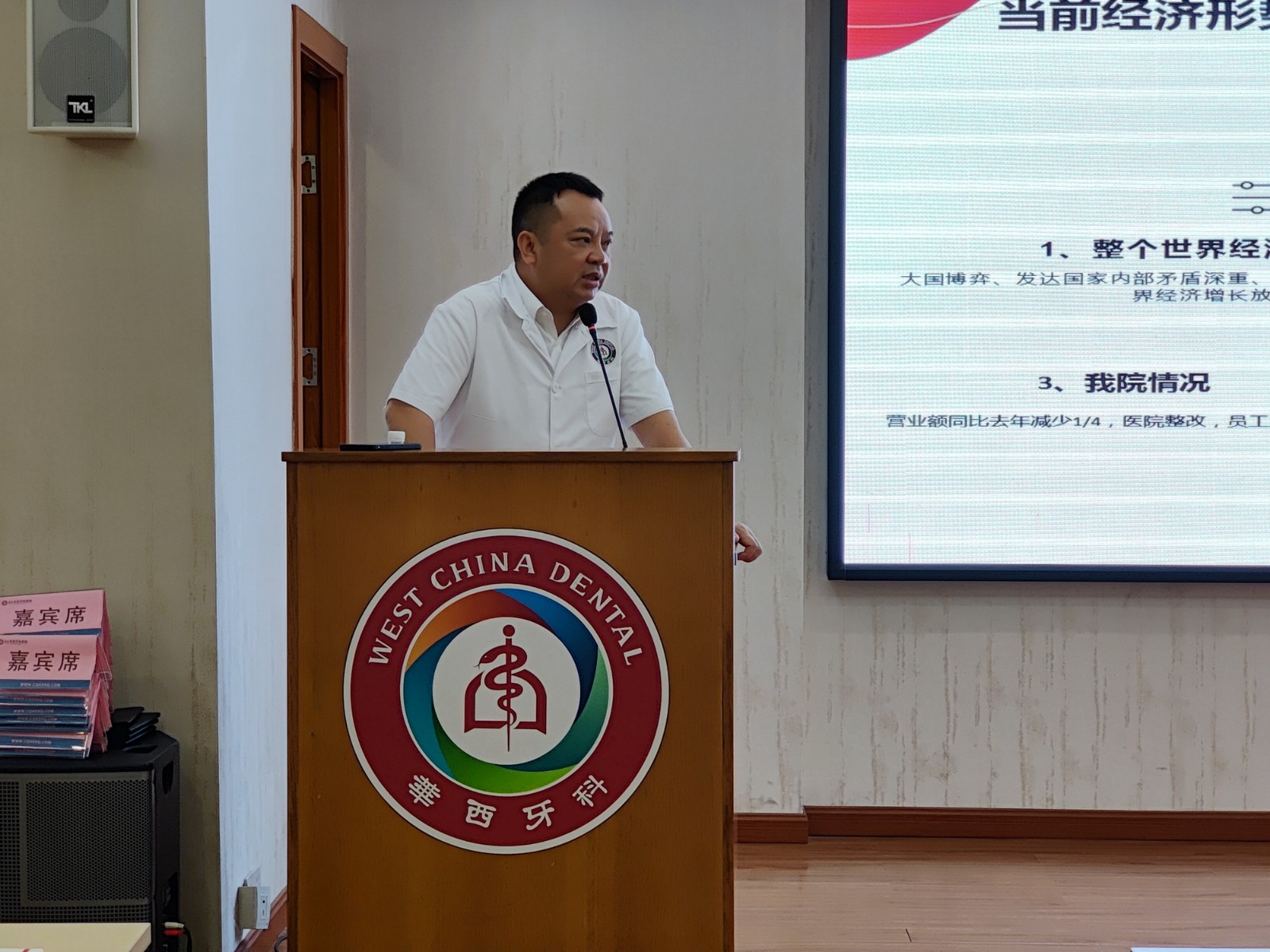 會上,陸勇軍總結(jié)了醫(yī)院成立以來的經(jīng)營發(fā)展情況,分析了目前的行業(yè)形勢,重點對重慶華西牙科醫(yī)院上半年經(jīng)營情況進(jìn)行了分析,結(jié)合個性化醫(yī)療時代以及行業(yè)未來發(fā)展趨勢進(jìn)行了研判。陸勇軍表示,當(dāng)前口腔醫(yī)療行業(yè)低價競爭現(xiàn)象嚴(yán)重,對整體市場造成了一定沖擊。他強(qiáng)調(diào),提高專業(yè)知識、引進(jìn)先進(jìn)設(shè)備、優(yōu)化就診流程提升、關(guān)注服務(wù)創(chuàng)新,提升就醫(yī)體驗才是破局的關(guān)鍵,重慶華西牙科醫(yī)院要加強(qiáng)個性化醫(yī)療服務(wù)開展,打造醫(yī)生個人形象IP,提升醫(yī)護(hù)人員專業(yè)技能,持續(xù)提高醫(yī)院經(jīng)營發(fā)展能力。