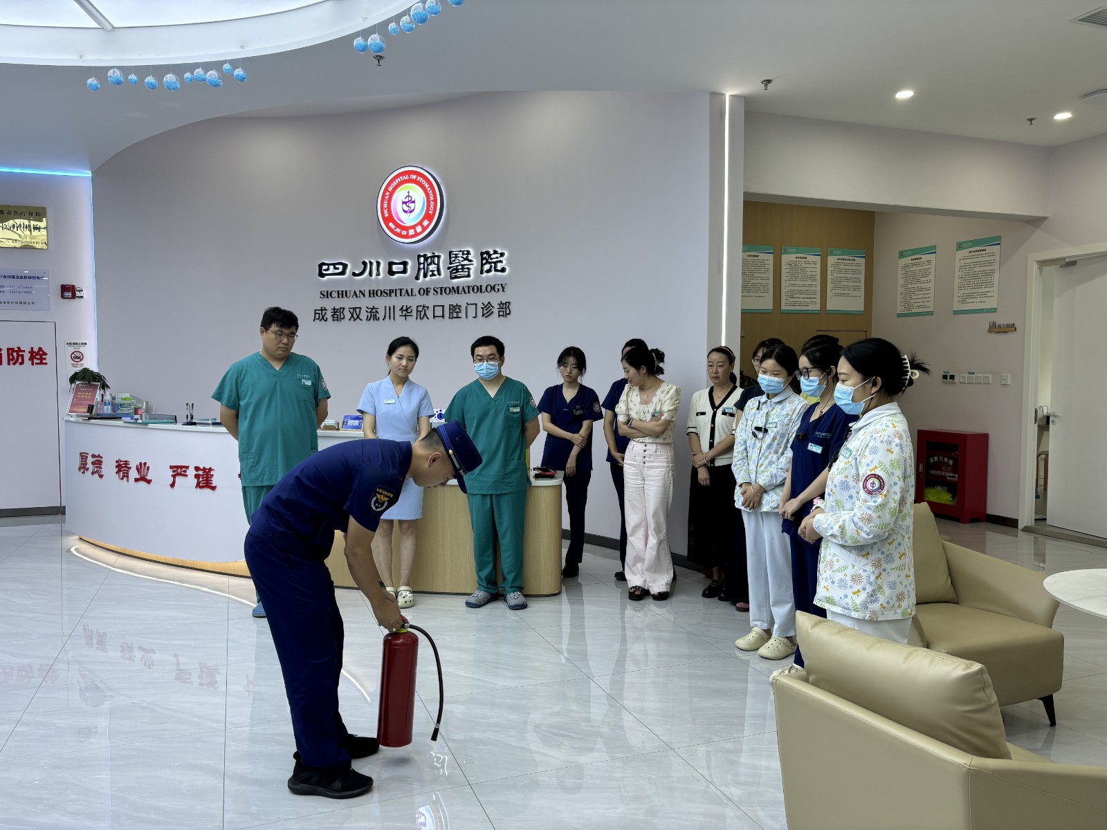 為進(jìn)一步增強(qiáng)醫(yī)護(hù)人員的消防安全意識和自防自救的能力。8月7日,四川口腔醫(yī)院雙流川華欣門診部組織開展消防安全培訓(xùn)活動。