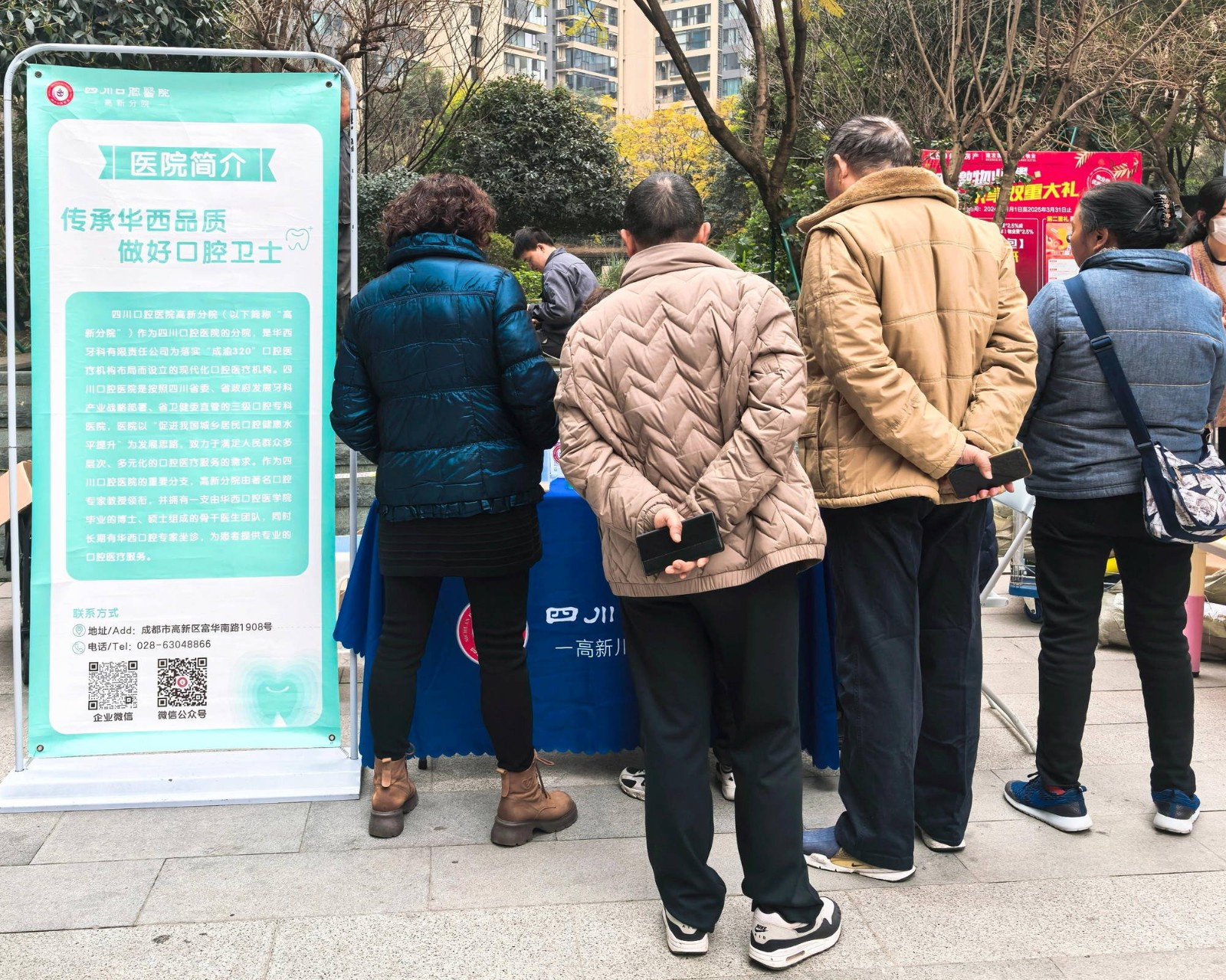 為積極踐行“傳承華西品質(zhì),做好口腔衛(wèi)士”的服務(wù)宗旨,守護周邊社區(qū)居民的口腔健康。3月2日,四川口腔醫(yī)院高新門診部走進社區(qū)開展口腔便民服務(wù),為社區(qū)居民提供免費口腔健康檢查,將專業(yè)的口腔服務(wù)送到居民身邊。