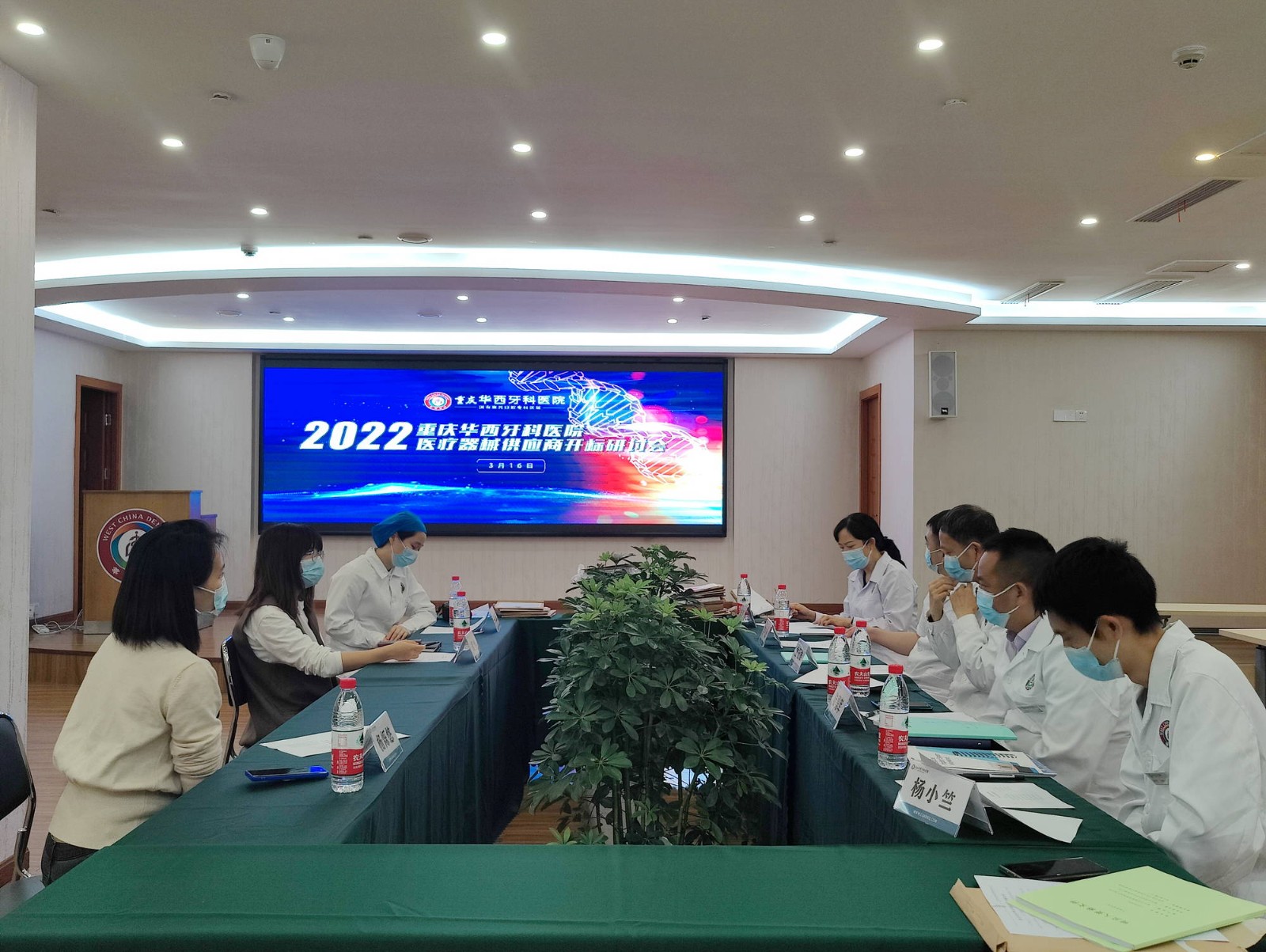 3月16日,重慶華西牙科醫(yī)院在醫(yī)院會議廳召開了2022年度供應(yīng)商開標研討會。重慶華西牙科醫(yī)院院長童冠雄、常務(wù)院長陸勇軍、副院長楊小竺、副院長李傳述、內(nèi)科主任唐明、醫(yī)務(wù)科副主任張芷瑋、財務(wù)總監(jiān)胡然、院長助理楊爍悠參加本次會議。