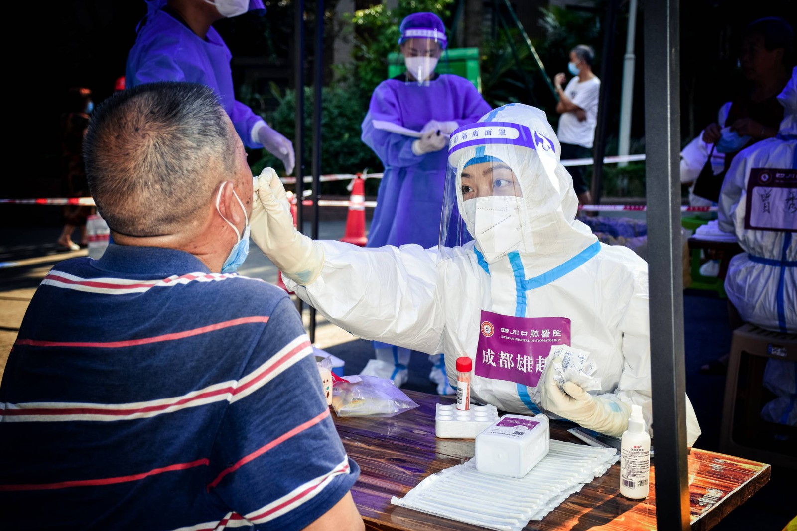 7月28日,青羊區(qū)開始第三輪核酸檢測。接到號令后,醫(yī)院核酸采樣突擊隊分別下沉至上善清波A區(qū)、上善清波B區(qū)、金沙愉景、乳牛場宿舍點位開展工作,截至29日凌晨1時,四川口腔醫(yī)院醫(yī)務(wù)人員累計完成10000余人次的核酸采樣任務(wù)。