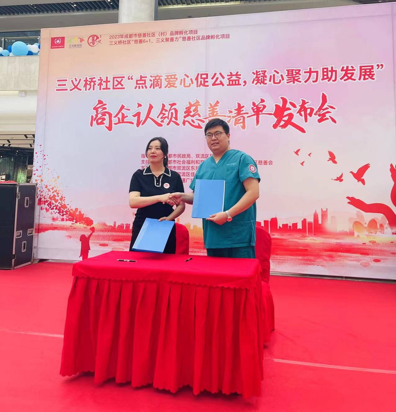 發(fā)布會現(xiàn)場,三義橋社區(qū)黨委副書記涂小蓉與四川口腔醫(yī)院雙流分院代表李業(yè)平醫(yī)生進(jìn)行了商企簽約,李業(yè)平代表雙流分院向社區(qū)進(jìn)行慈善承諾,他表示,雙流分院將積極參與社區(qū)的公益活動,通過義診到社區(qū)、口腔科普講座等多種形式,為社區(qū)居民提供優(yōu)質(zhì)的口腔健康支持與服務(wù)。