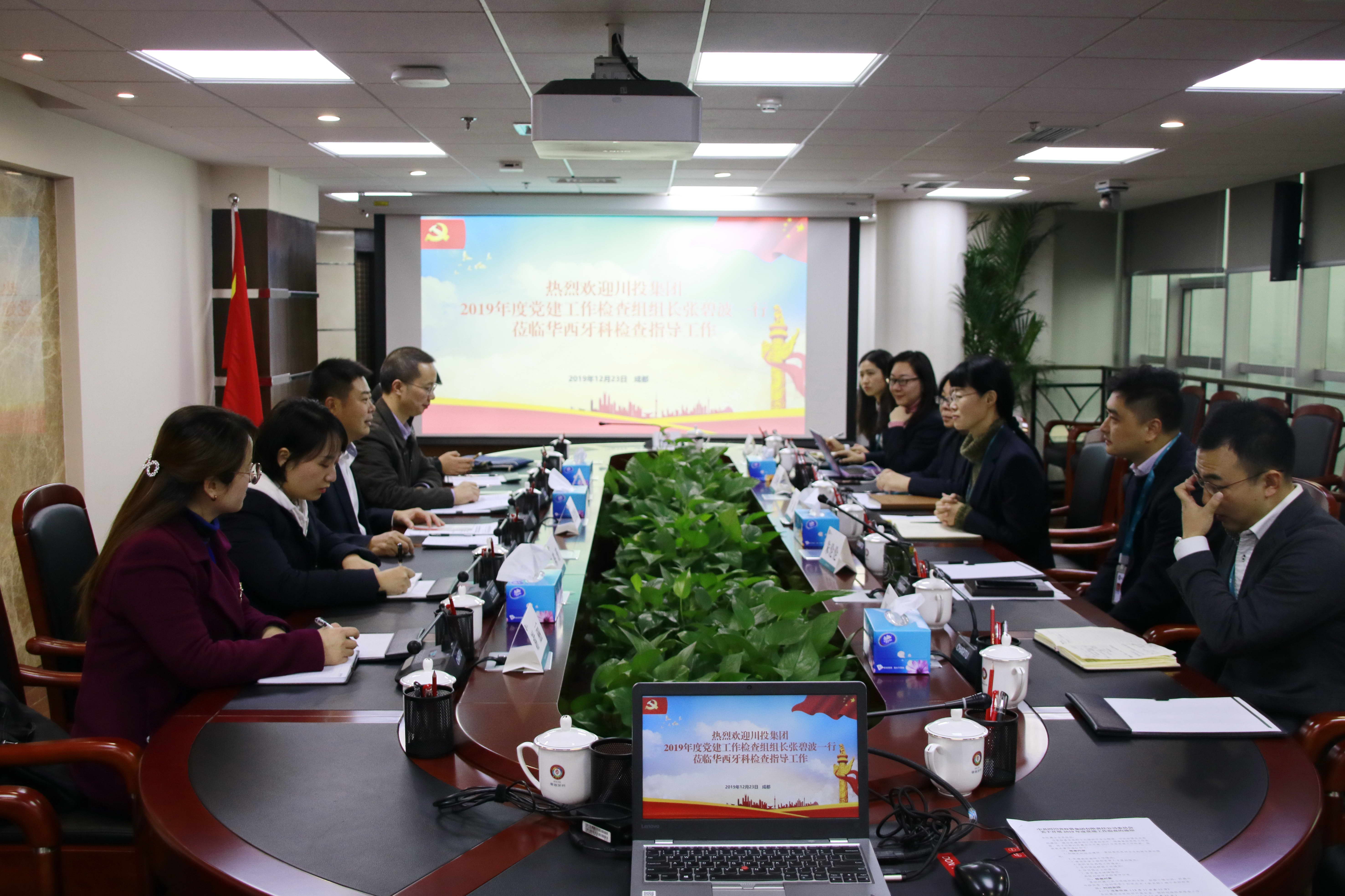 12月23日,川投集團2019年度黨建工作檢查組組長張碧波一行5人到華西牙科檢查2019年黨建工作。華西牙科黨委副書記、紀委書記金晶、財務總監(jiān)王海帆陪同并作情況匯報。