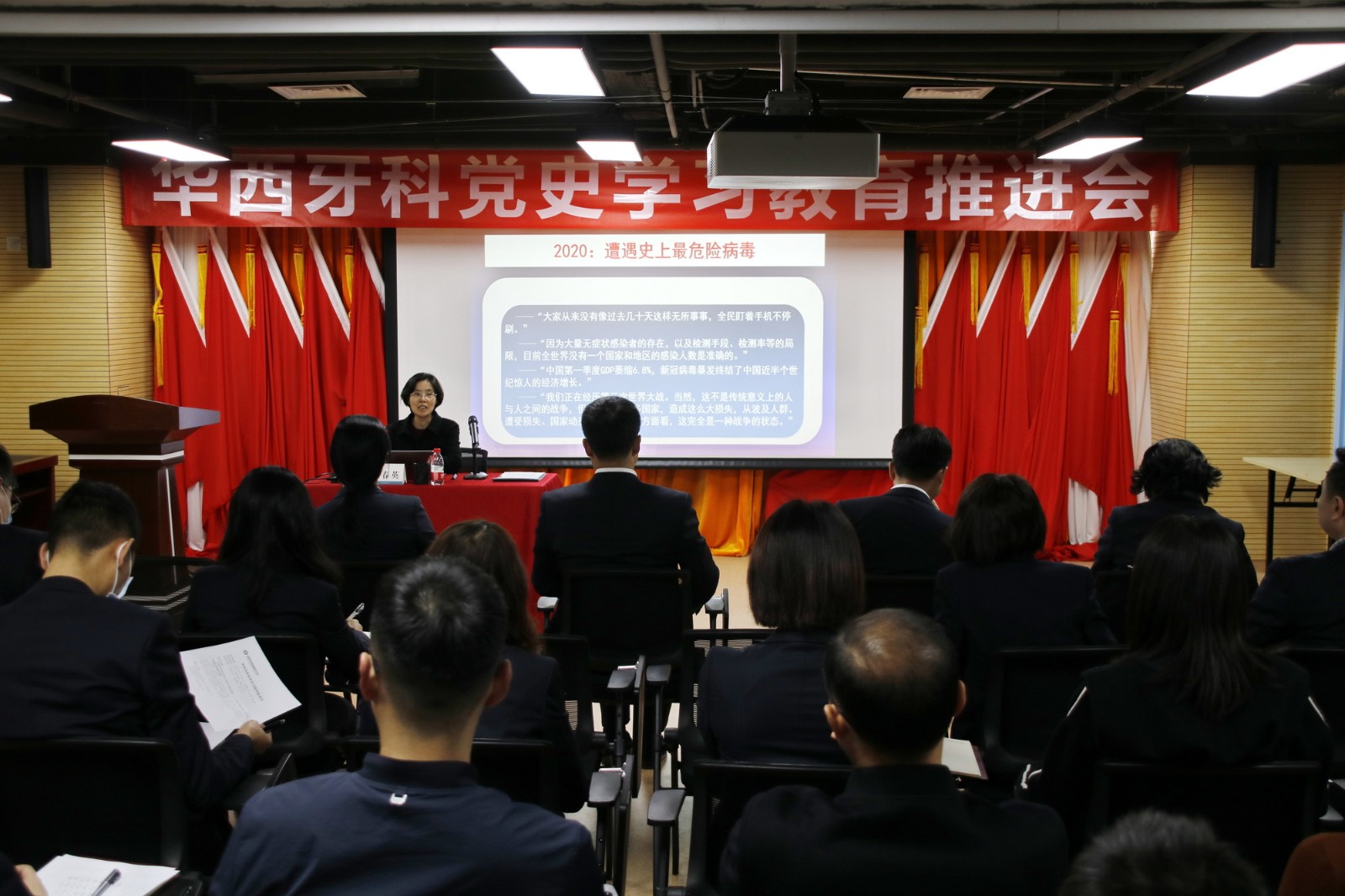 按照川投集團(tuán)黨委關(guān)于開展黨史學(xué)習(xí)教育的統(tǒng)一部署,根據(jù)《華西牙科黨史學(xué)習(xí)教育實(shí)施方案》安排,3月24日下午,華西牙科召開黨史學(xué)習(xí)教育推進(jìn)會(huì)并舉辦“學(xué)黨史、守初心、擔(dān)使命”專題講座。中共四川省委黨校、四川長(zhǎng)征干部學(xué)院黨史教研部王春英教授受邀出席會(huì)議,公司中層副職以上管理人員,各子公司主要負(fù)責(zé)人,公司全體黨員、入黨積極分子代表等40余人參加會(huì)議。會(huì)議由川投集團(tuán)黨委委員、副總經(jīng)理兼華西牙科黨委書記、董事長(zhǎng)羅永平主持。