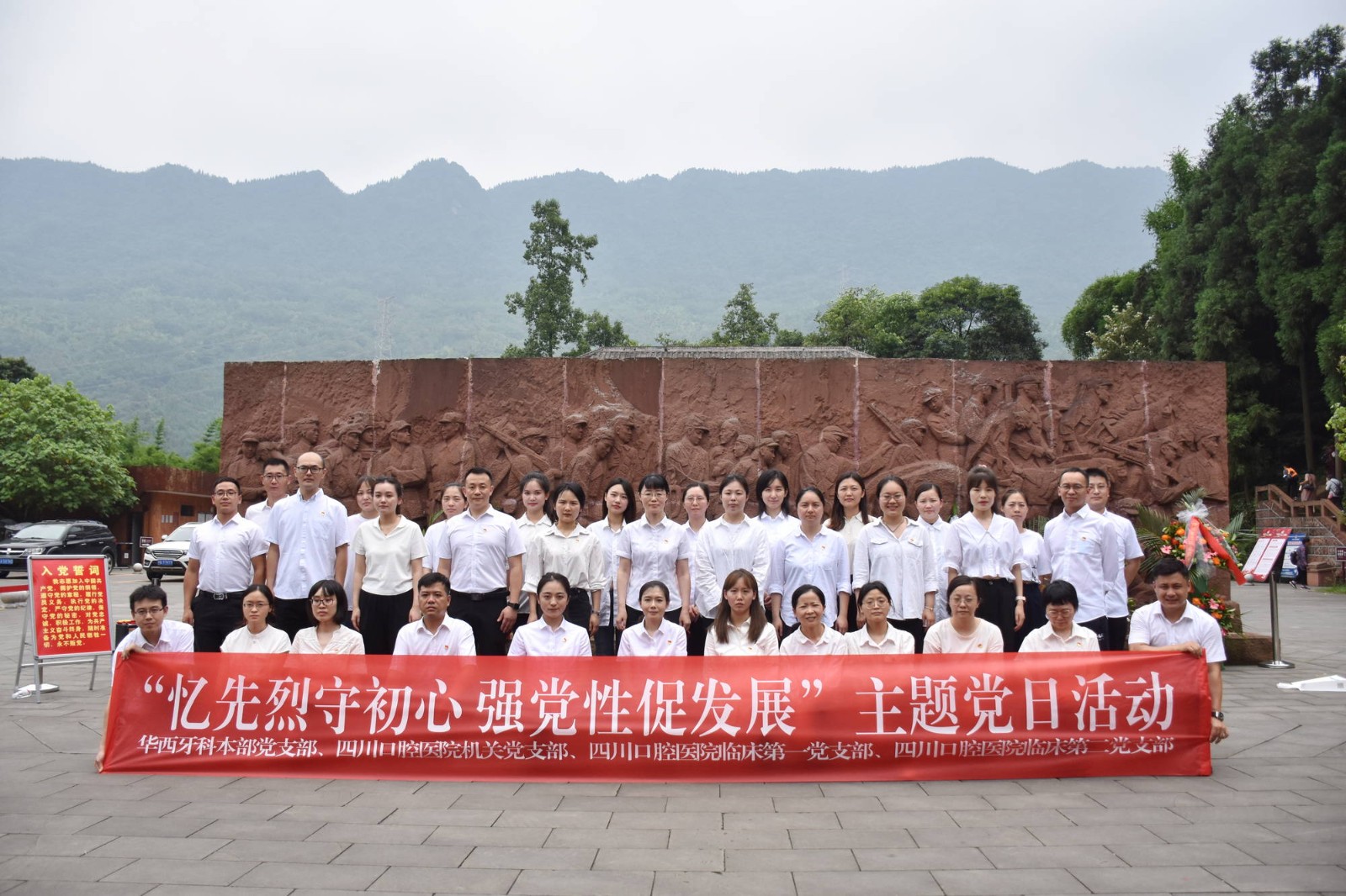 為緬懷革命先烈,傳承紅色精神,6月22日,華西牙科本部黨支部聯(lián)合四川口腔醫(yī)院機(jī)關(guān)黨支部、臨床第一黨支部、臨床第二黨支部,組織黨員、預(yù)備黨員、入黨積極分子共35人,赴成都邛崍市高何鎮(zhèn)紅軍長征紀(jì)念館開展“憶先烈守初心,強(qiáng)黨性促發(fā)展”主題黨日活動。華西牙科黨委副書記、職工董事、工會主席金晶以普通黨員身份參加活動。