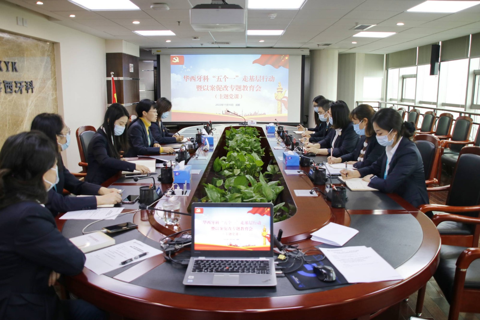 為認(rèn)真學(xué)習(xí)貫徹黨的二十大精神,持續(xù)深化“五心”黨建品牌,11月10日下午,根據(jù)集團(tuán)公司“五個(gè)一”走基層行動(dòng)安排部署,華西牙科黨委副書記、職工董事、工會(huì)主席金晶為分管部門的黨員職工講授了“五個(gè)一”下基層行動(dòng)暨以案促改廉潔專題黨課。黨委組織部部長(zhǎng)羅陽(yáng)主持會(huì)議。辦公室、人力資源部、法務(wù)審計(jì)部全體人員參加會(huì)議。
