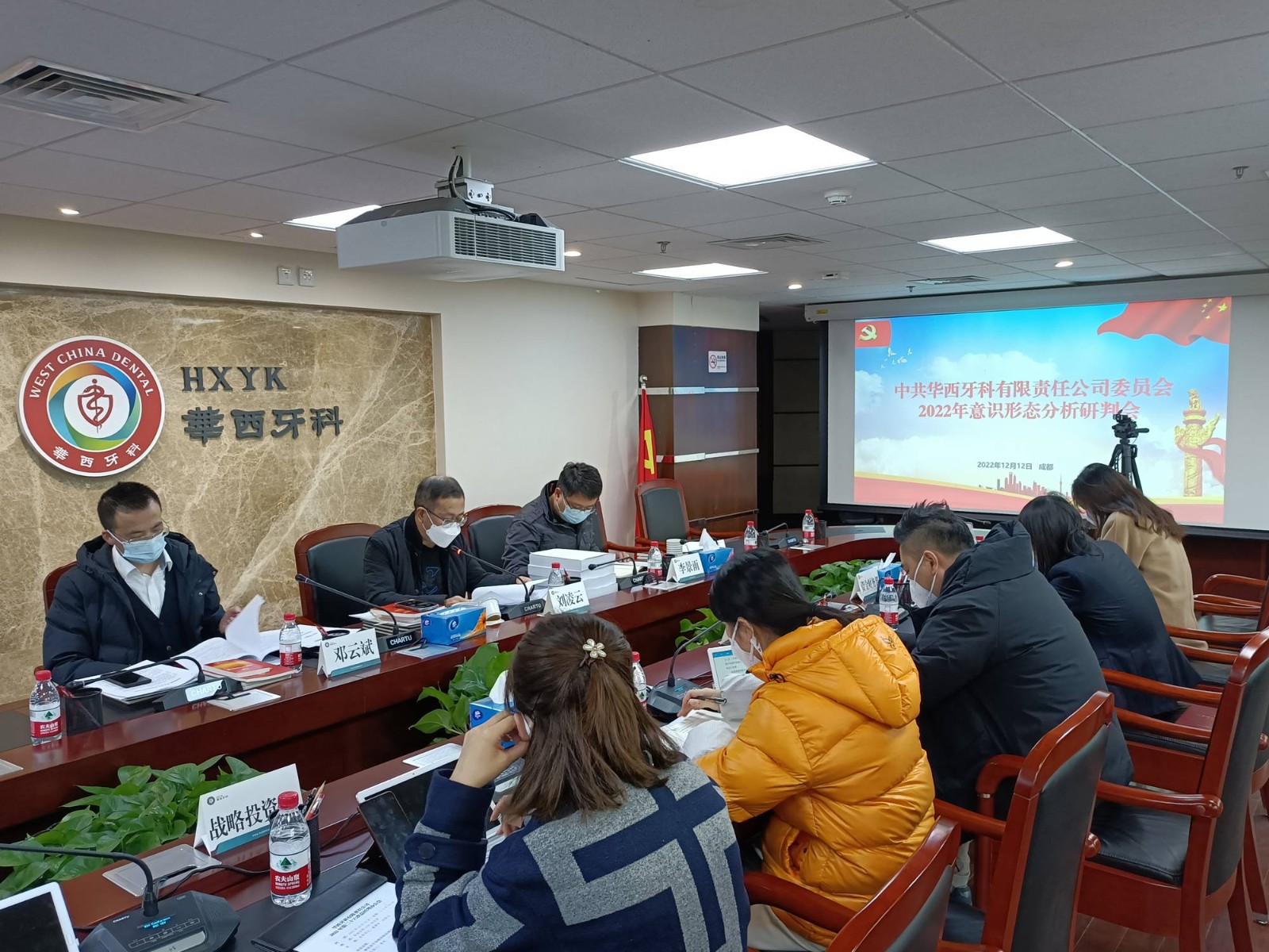 12月12日下午,華西牙科黨委召開2022年意識(shí)形態(tài)分析研判會(huì),華西牙科黨委書記、董事長劉凌云主持會(huì)議,黨委副書記、職工董事、工會(huì)主席金晶,黨委委員、副總經(jīng)理劉云戈,黨委委員、財(cái)務(wù)總監(jiān)王海帆,副總經(jīng)理李景雨,黨委委員、紀(jì)委書記鄧云斌,各部門負(fù)責(zé)人分別以線上+線下方式參加會(huì)議。