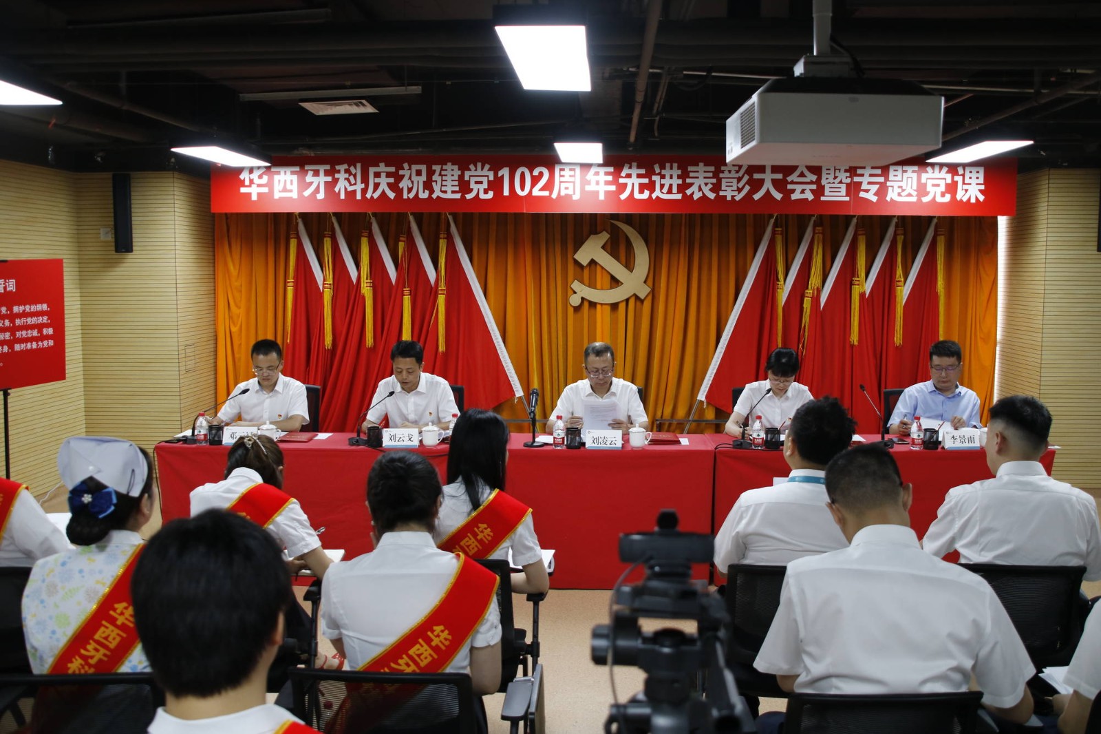 在中國共產(chǎn)黨102周年華誕即將到來之際,6月30日上午,華西牙科黨委召開先進(jìn)表彰大會暨專題黨課。華西牙科黨委書記、董事長、總經(jīng)理劉凌云,黨委副書記、工會主席金晶,黨委委員、副總經(jīng)理劉云戈,副總經(jīng)理李景雨,黨委委員、紀(jì)委書記鄧云斌出席會議。大會由金晶主持。