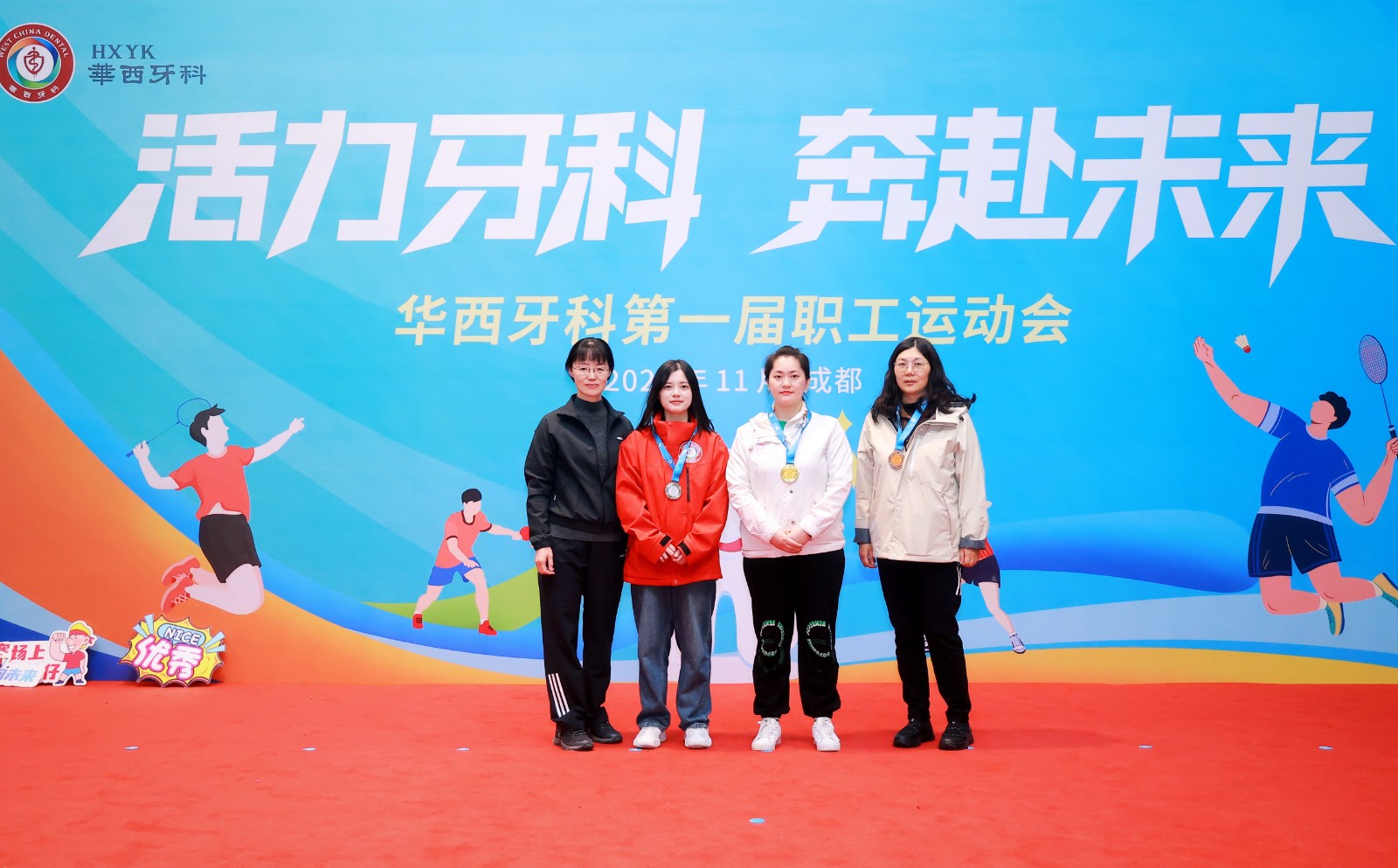 11月14日至15日,“活力牙科,奔赴未來”華西牙科第一屆職工運動會在成都舉行。華西牙科黨委書記、董事長、總經(jīng)理劉凌云致開幕辭,華西牙科班子成員參加活動。華西牙科本部及所屬公司組成的6支代表隊齊聚一堂,70余名參賽隊員精神飽滿、斗志昂揚,在賽場上揮汗競技,展示了華西牙科干部職工的良好精神風(fēng)貌,以團結(jié)、拼搏、奉獻的企業(yè)文化精神,為華西牙科經(jīng)營發(fā)展注入了新的活力。
