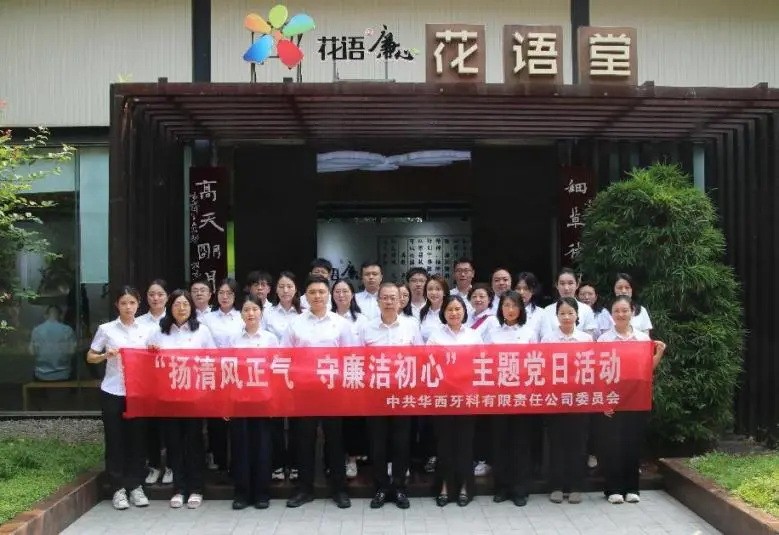 為推動深入貫徹中央八項規(guī)定精神學習教育走深走實,深化廉潔文化建設,5 月 22 日上午,華西牙科赴成都市溫江區(qū)“花語廉心”廉潔文化教育基地組織開展“揚清風正氣、守廉潔初心”主題黨日活動。華西牙科黨委書記、董事長、總經理劉凌云,黨委委員、財務總監(jiān)單丹,本部黨員、入黨積極分子和所屬公司黨員代表共 30 人參加活動。在基地講解員的帶領下,全體人員先后參觀了“防微館”和“花語堂”?!胺牢^”將傳統(tǒng)中醫(yī)藥文化與廉潔文化相結合,講述了“華佗妙方醫(yī)貪官”等故事,用古代中醫(yī)“出汗排毒、針灸通脈、猛藥去疴、壯士斷腕”四種防治措施類比監(jiān)督執(zhí)紀的“四種形態(tài)”,傳遞出了廉潔文化中“防”和“治”的概念?!盎ㄕZ堂”將花語與廉潔文化相結合,通過沙畫視頻、書法、手繪、攝影等作品,讓大家在賞心悅目的同時感受到清廉之風的熏染。參觀結束后,劉凌云帶領全體黨員重溫了入黨誓詞,進一步堅定了理想信念。