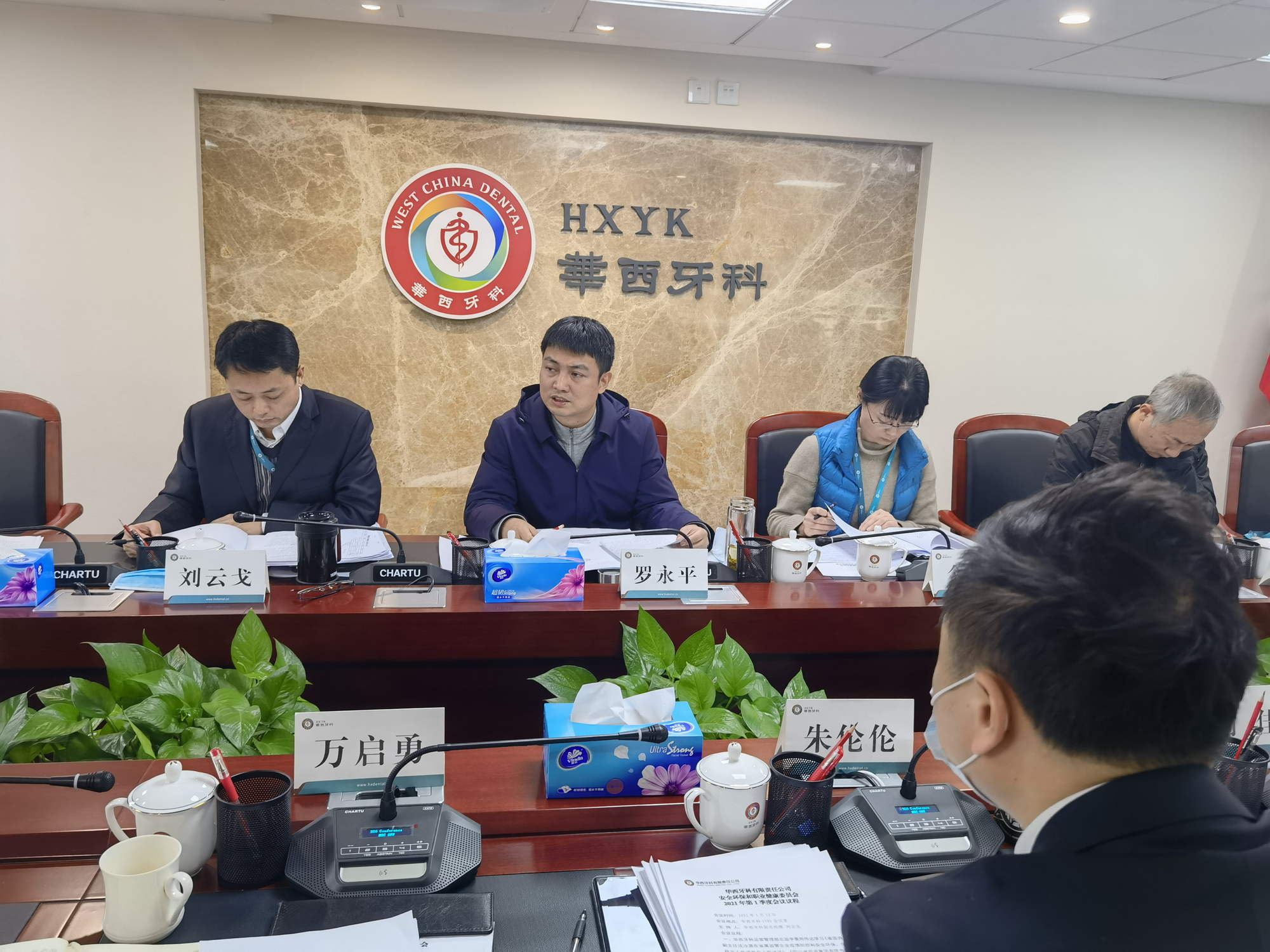 2021年1月12日上午,華西牙科召開2021年安全環(huán)保職業(yè)健康委員會第一季度工作會議,會議由副總經(jīng)理、安環(huán)職委員會副主任劉云戈主持,川投集團黨委委員、副總經(jīng)理兼華西牙科黨委書記、董事長、安環(huán)職委員會主任羅永平,黨委副書記、紀委書記、職工董事金晶,黨委委員、董事、財務總監(jiān)王海帆,各部門負責人參加會議。