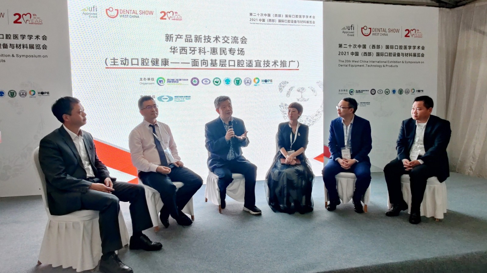 4月22日下午,華西牙科參加第二十次中國(西部)國際口腔醫(yī)學學術會暨2021年中國(西部)國際口腔設備與材料展覽會,聯手四川惠民口腔健康推廣中心舉辦了題為“主動口腔健康-面向基層口腔適宜技術推廣”的惠民專場活動。四川大學華西口腔醫(yī)(學)院專家、華西牙科投決會委員劉福祥教授,四川大學華西口腔醫(yī)(學)院、四川惠民口腔健康推廣中心華西惠民專家智庫專家包崇云教授、北京大學口腔醫(yī)學院潘韶霞主任醫(yī)師、副教授等專家到場授課,川投集團黨委委員、副總經理兼華西牙科黨委書記、董事長羅永平、副總經理兼四川口腔醫(yī)院董事長劉云戈、四川口腔醫(yī)院院長助理張琪副主任醫(yī)師等參加。