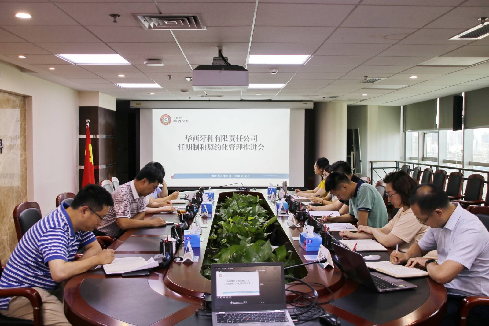 為有效推進(jìn)華西牙科任期制和契約化管理工作落地落實(shí),6月28日下午,華西牙科召開任期制和契約化管理推進(jìn)會(huì)第二次會(huì)議。川投集團(tuán)黨委委員、副總經(jīng)理兼華西牙科黨委書記、董事長(zhǎng)羅永平,華西牙科黨委副書記、紀(jì)委書記、職工董事金晶,副總經(jīng)理劉云戈,黨委委員、董事、財(cái)務(wù)總監(jiān)王海帆、副總經(jīng)理李景雨,財(cái)務(wù)部、人力資源部、戰(zhàn)略發(fā)展部、運(yùn)營(yíng)管理部部門負(fù)責(zé)人和員工代表參加會(huì)議。