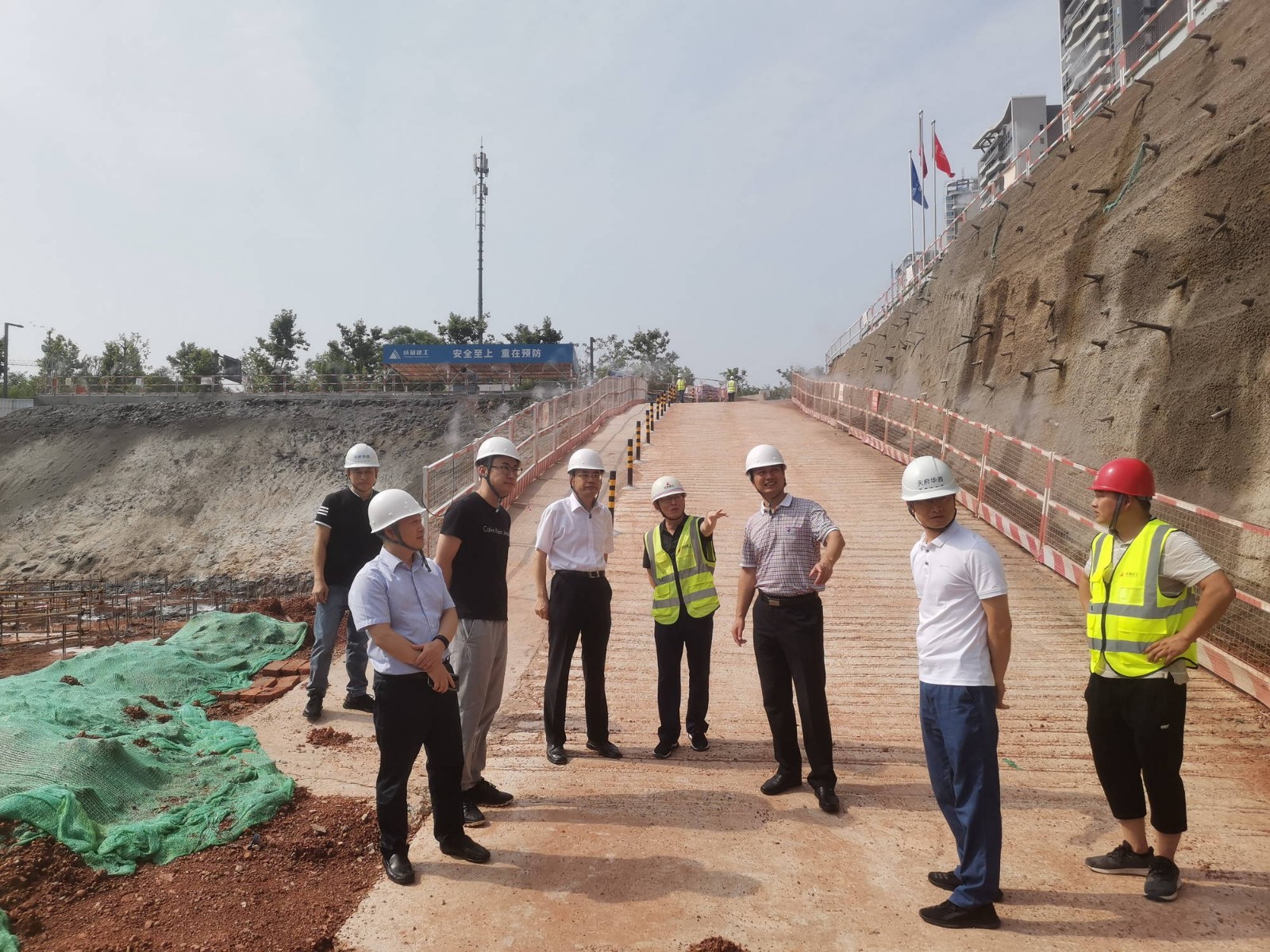 成都華西天府公司副總經(jīng)理蘭吉、葉曙光,施工單位、監(jiān)理單位相關(guān)項(xiàng)目負(fù)責(zé)人在工地現(xiàn)場(chǎng)匯報(bào)了項(xiàng)目推進(jìn)和現(xiàn)場(chǎng)安全管理工作情況。