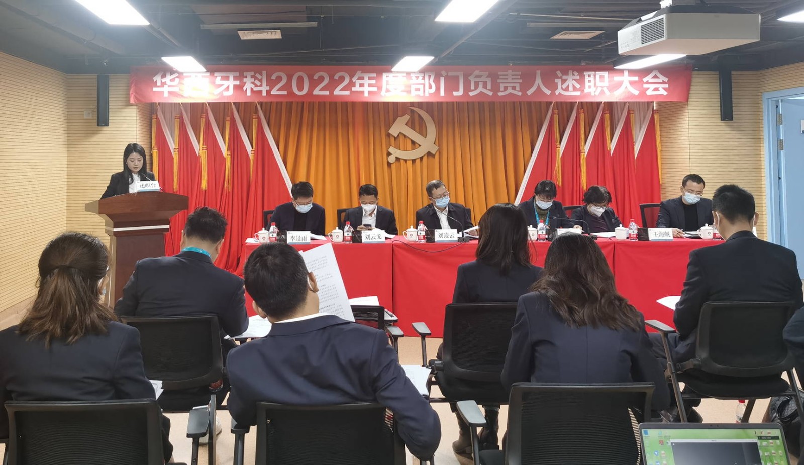 2月3日,華西牙科召開2022年度部門負(fù)責(zé)人述職大會,華西牙科班子成員、各部門負(fù)責(zé)人、所屬公司班子成員代表、員工代表共計26人通過現(xiàn)場及視頻方式參會。會議由華西牙科黨委書記、董事長劉凌云主持。