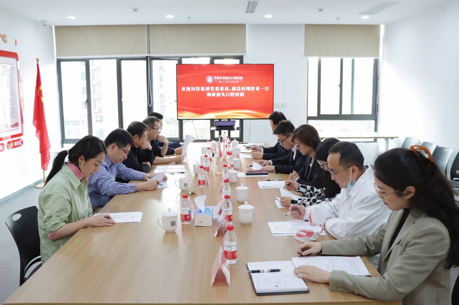 3月4-5日,川投集團黨委委員、副總經(jīng)理舒勇率華西牙科黨委書記、董事長劉凌云、副總經(jīng)理李景雨一行,前往汕頭口腔醫(yī)院調(diào)研。廣東歐瑞口腔科技有限公司董事長張永章、總經(jīng)理張朝通,汕頭口腔醫(yī)院黨支部書記、董事長鐘至誠,院長于丹教授陪同調(diào)研。