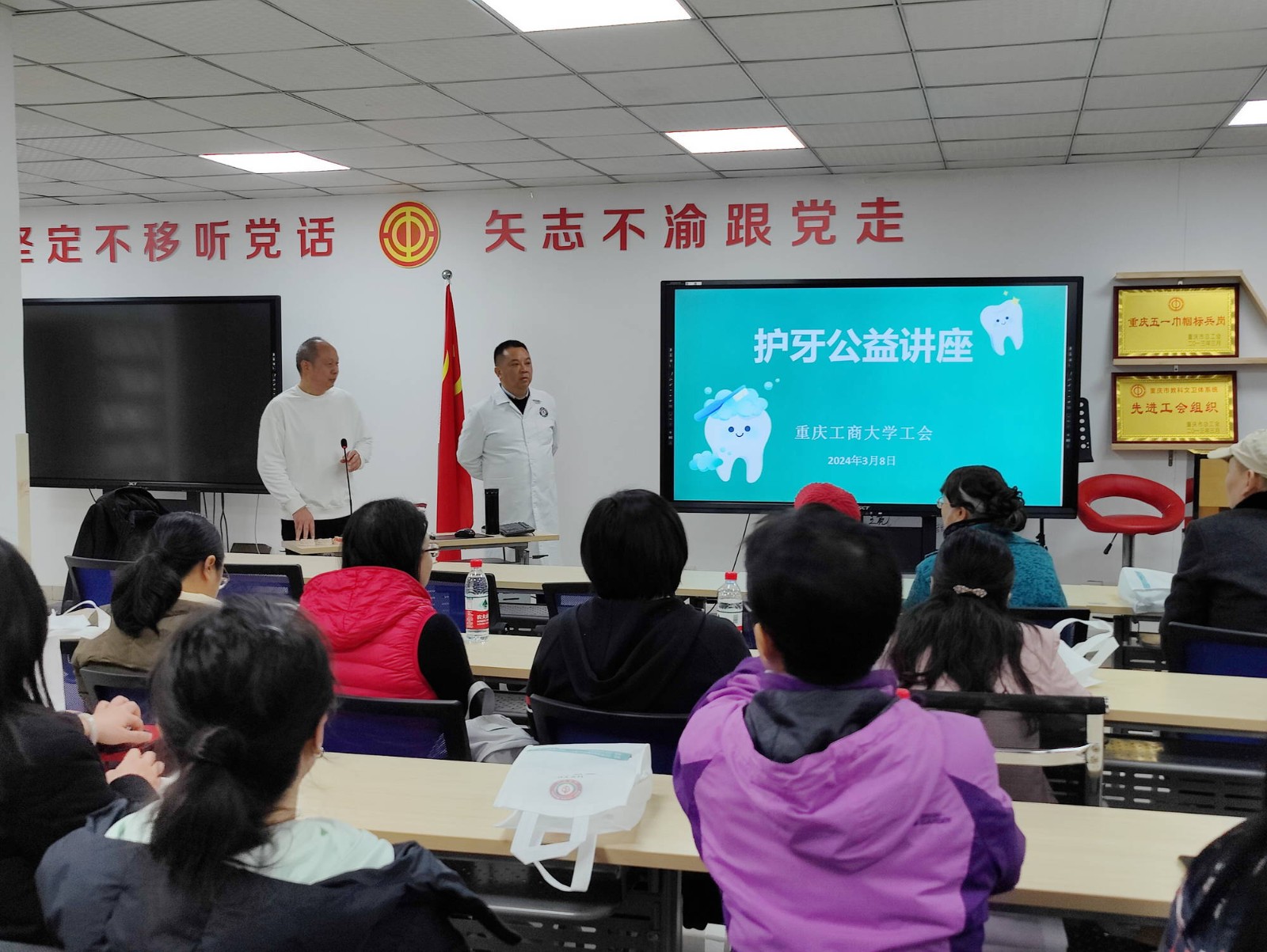 3月8日,重慶華西牙科醫(yī)院受邀參加重慶工商大學(xué)工會委員會婦女節(jié)活動,為重慶工商大學(xué)廣大教職工開展了口腔健康公益講座。重慶工商大學(xué)工會委員會主席段遠(yuǎn)鵬、重慶華西牙科醫(yī)院院長陸勇軍、頜面外科劉懷遠(yuǎn)醫(yī)生、重慶工商大學(xué)教職工參加講座。