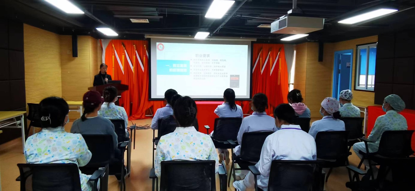 四川口腔醫(yī)院護(hù)理院感部部長(zhǎng)蔣薇講解了護(hù)士的職業(yè)要求、素質(zhì)要求以及如何規(guī)劃職業(yè)生涯等內(nèi)容,通過(guò)理論知識(shí)結(jié)合臨床工作經(jīng)驗(yàn)的形式,為大家深入淺出地講授和示范,課堂情境交融,內(nèi)容豐富詳實(shí)。隨后,重點(diǎn)講解了醫(yī)德的本質(zhì)、范圍、特征、評(píng)價(jià)手段以及職能作用,指引新護(hù)士繼承醫(yī)學(xué)道德優(yōu)良傳統(tǒng),樹(shù)立高尚理想。幫助其盡快適應(yīng)角色,早日成長(zhǎng)為有修養(yǎng)、有素質(zhì)、有能力、有水平的護(hù)理人員。