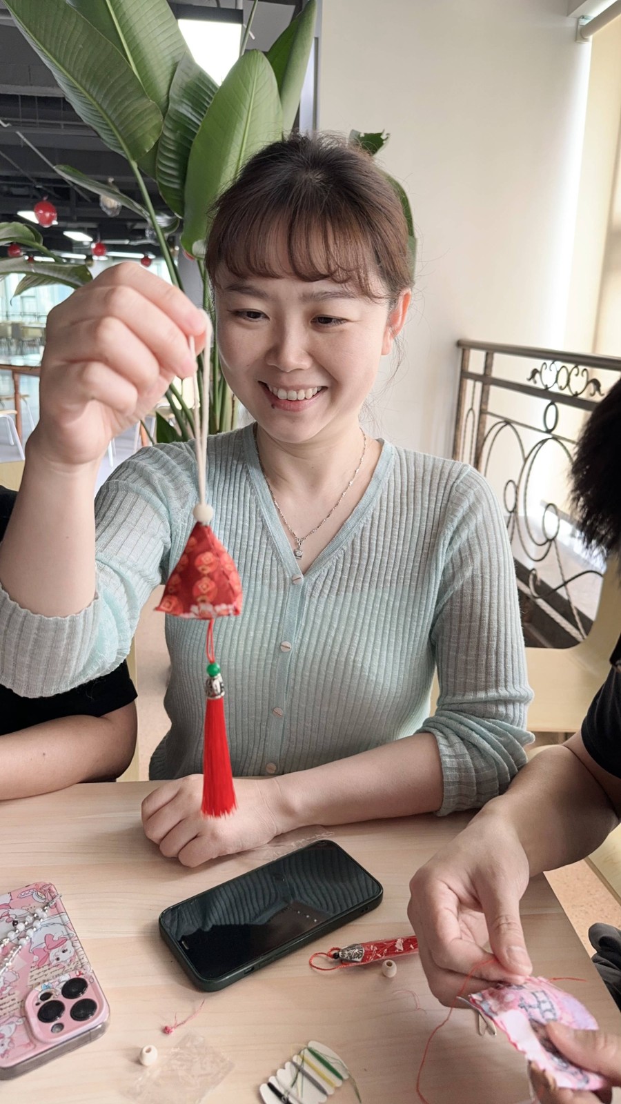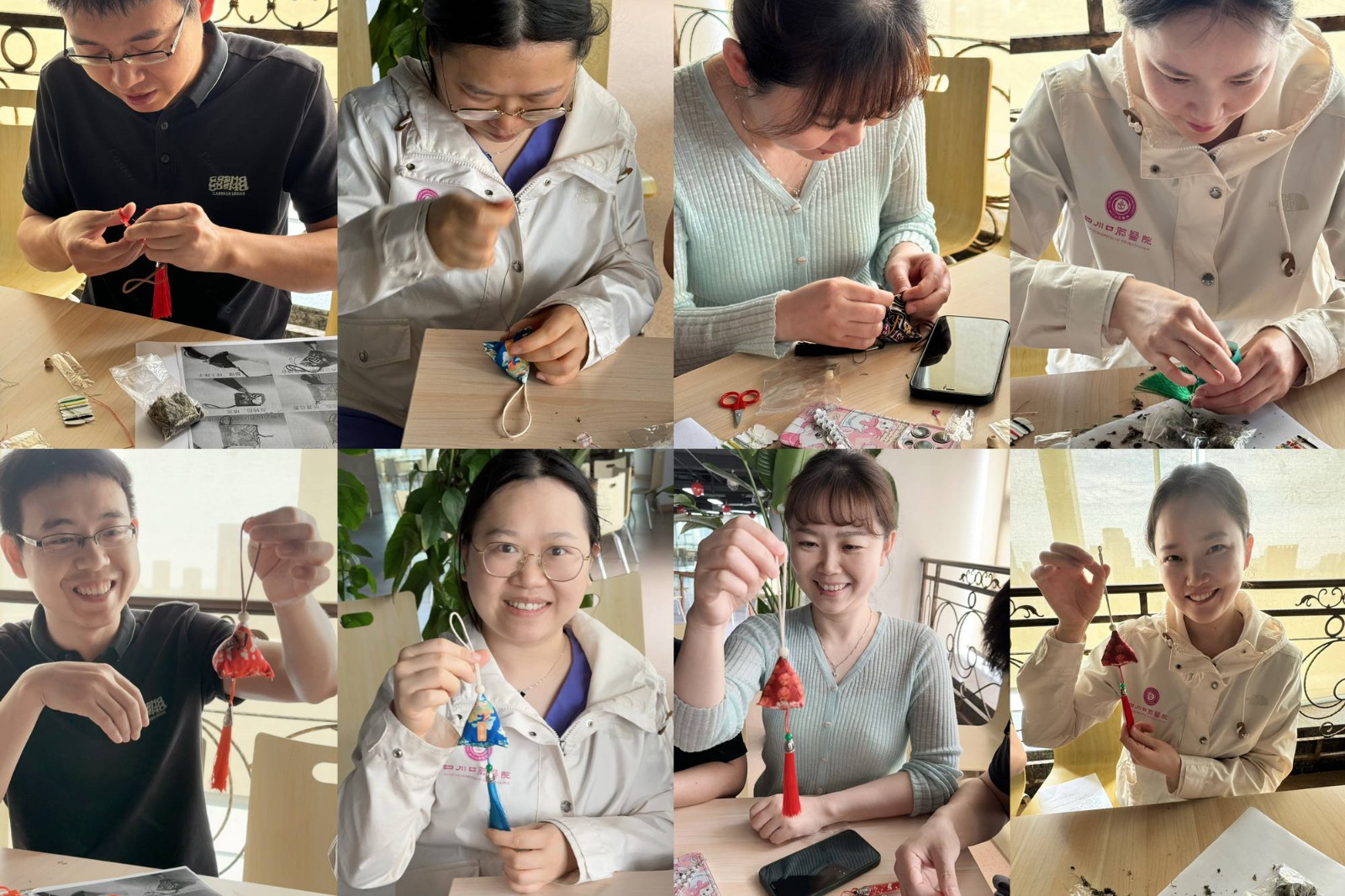 誦讀活動后,組織黨員、團(tuán)員手工制作香囊,經(jīng)過穿針引線、縫邊、裝艾草、封口、定型等工序后,完成了香囊制作。大家把制作好的精美香囊展示出來,一起交流欣賞,傳達(dá)著幸福安康的美好愿望。